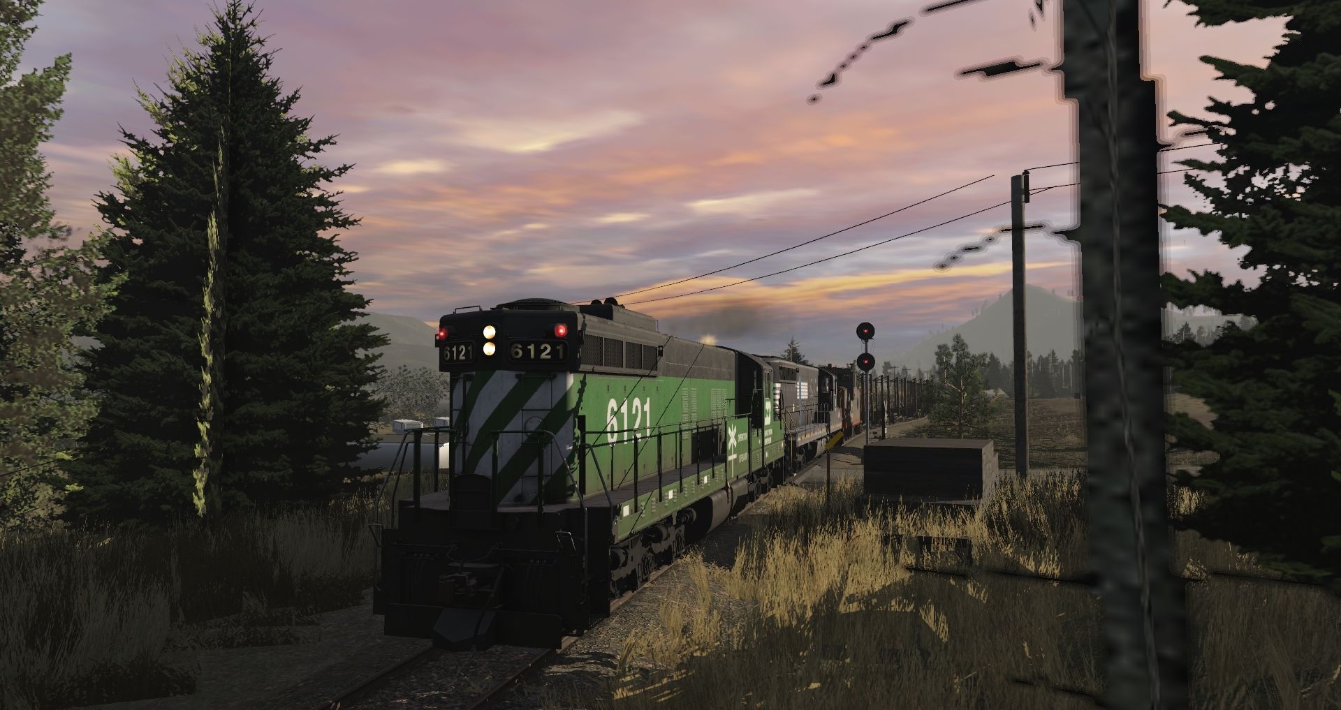 Tags: Trainz Railroad Simulator 2019, Eagle River Railway b., 01 Monday - 14:57 21/05/2022 - 00:19:01, BN SD9 (ex-GN) PHIII #6121, CC&W SD9M #58, Caboose (Wide Vision) - RP&P, SVLX Log Rack, ERSX 54ft flatcar
