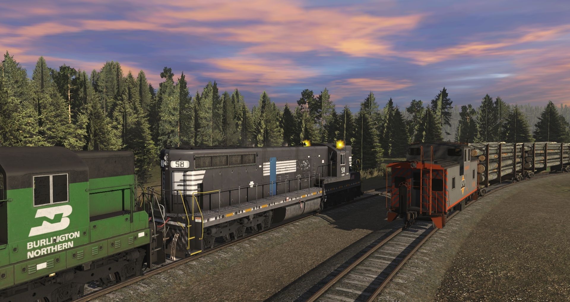 Tags: Trainz Railroad Simulator 2019, Eagle River Railway b., 01 Monday - 14:57 21/05/2022 - 00:19:01, BN SD9 (ex-GN) PHIII #6121, CC&W SD9M #58, Caboose (Wide Vision) - RP&P, SVLX Log Rack, 3DZ PRR X23 Boxcar, 36_ft_Supply_Flat, 36_ft_Boom_Flatcar_1, 36 ft Flatcar, Chicago Great Western Oil Tanker v2