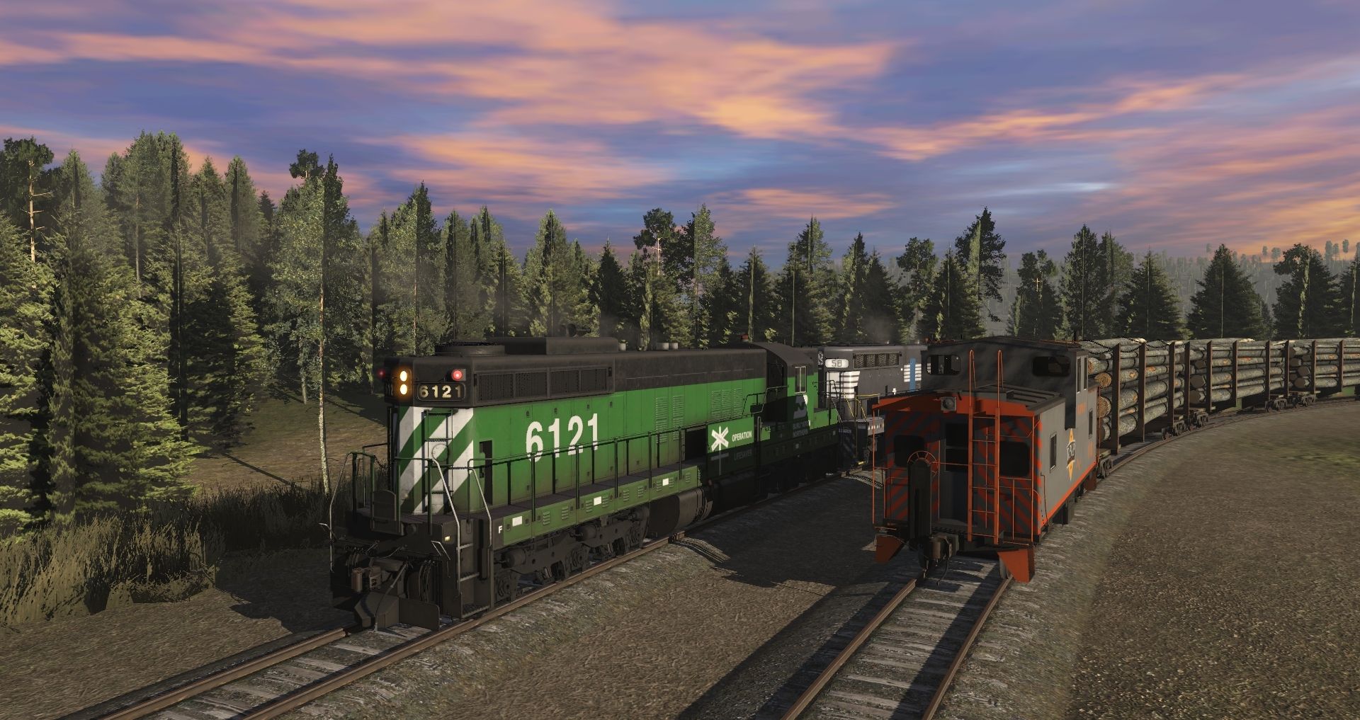 Tags: Trainz Railroad Simulator 2019, Eagle River Railway b., 01 Monday - 14:57 21/05/2022 - 00:19:01, BN SD9 (ex-GN) PHIII #6121, CC&W SD9M #58, Caboose (Wide Vision) - RP&P, SVLX Log Rack, 3DZ PRR X23 Boxcar, 36_ft_Supply_Flat, 36_ft_Boom_Flatcar_1, 36 ft Flatcar, Chicago Great Western Oil Tanker v2