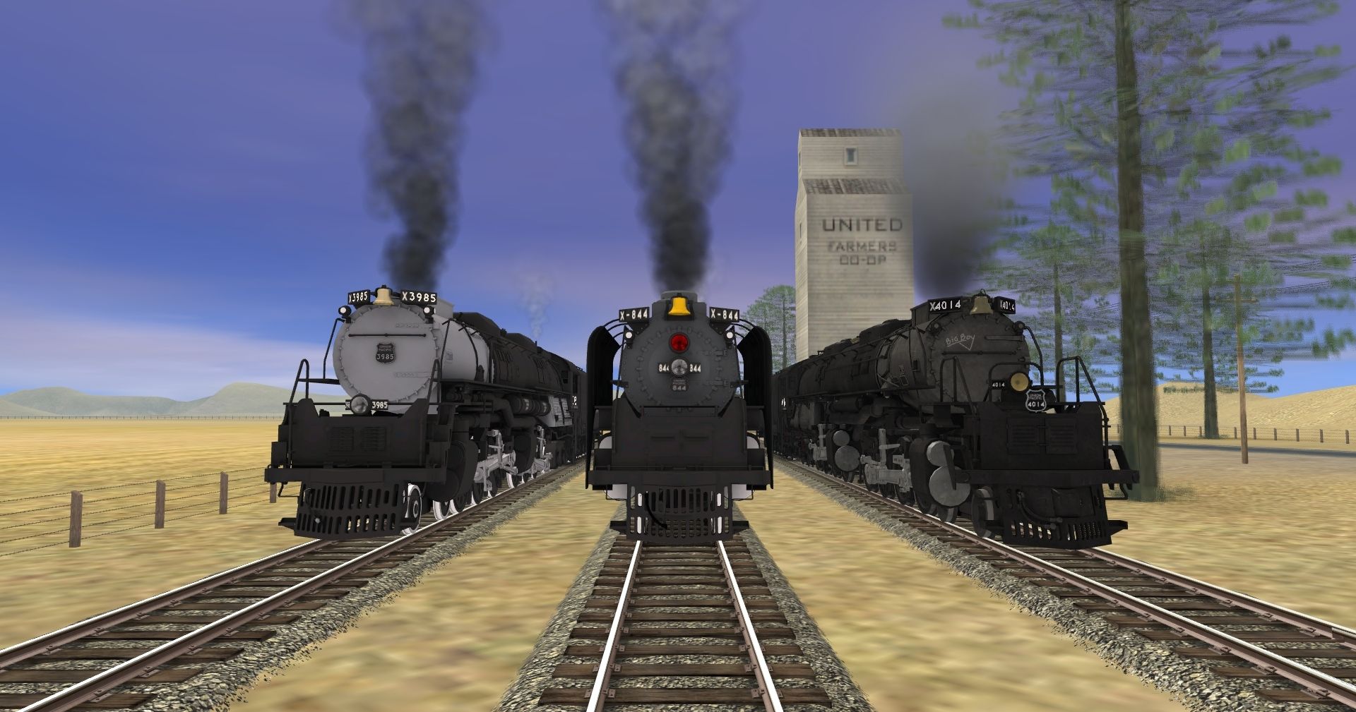 Tags: Trainz: A New Era, Intro to Steam, Default, UPRR FEF-3 844, UPRR Challenger Oil, Union Pacific Big Boy 4014 Engine, UPRR FEF Black oil tender, UPRR Centipede tender oil, Union Pacific Big Boy 4014 Tender