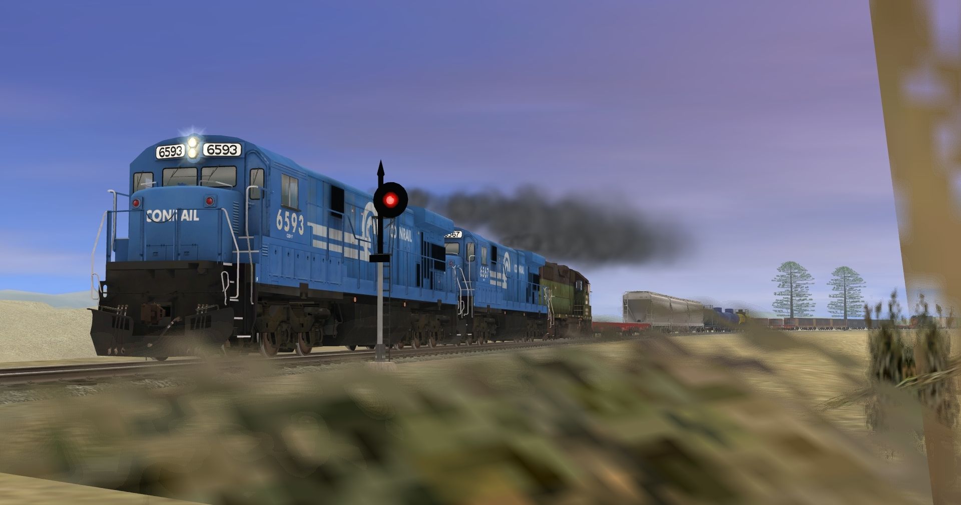 Tags: Trainz: A New Era, Intro to Steam, Default, CR C30-7A, BN GP38-2 dirty, SP SD40T-2, PRR FM flat car, JRPX ACF Centerflow 4 Bay round hatch, Oil Tanker UTLX 60 Ft, MN MOW GATX, Penn Salt GATX Tanker, Log Wagon Short Knuckle, Mill Gondola 52' Railgon, Mill Gondola 52' WL&G (5700 series)