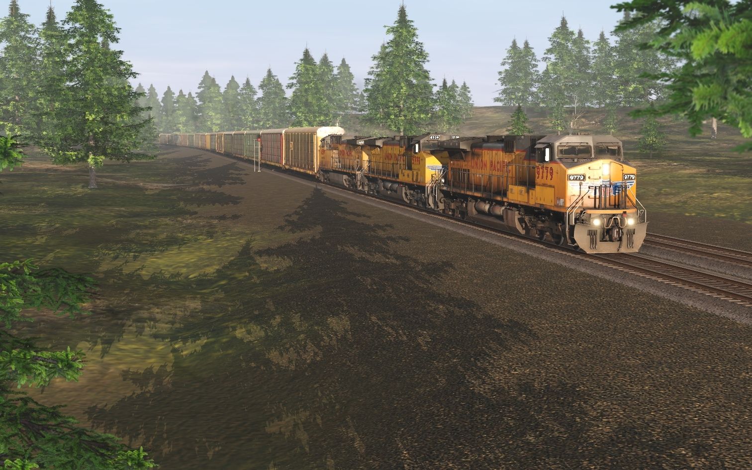 Tags: Trainz Railroad Simulator 2019, Bradfield Speedway, UMR2022 2 - Default, UP C44-9W EX-CNW 9770-9834 3, UP AC4400CW 5700-5809 TS19 1, UP AC4400CW 6430-6549 TS19 4, 89ft Autorack Tri-Level CN # 535168, 89ft Autorack Tri-Level CP # 541432, 89ft Autorack Tri-Level CP # 541466, 89ft Autorack Tri-Level CP # 556106, 89ft Autorack Tri-Level CR # 668668, 89ft Autorack Tri-Level CSX # 864582, 89ft Autorack Tri-Level GTW # 346225, 89ft Autorack Tri-Level MR