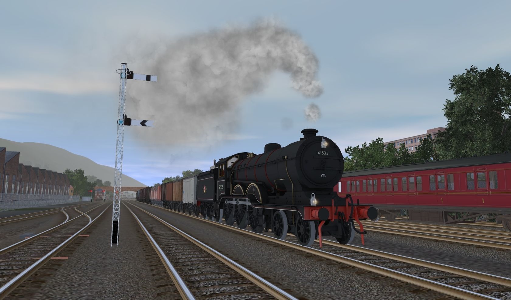 Tags: Trainz: A New Era, Rosworth Vale - LNER (Rev.1), BR Steam, LNER B12 61535, LNER L1 class BR, BR Mk1 SK Carmine, LMS BR56 CK (D1694) Composite Corridor carriage - Maroon, LNER GER Large Tender BR Late Crest, BR 12 ton Insul-Fish Van White detailed 3.5m, BR Mk1 GUV Maroon, BR 10 ton 4-Vented Meat Van 1 detailed 3.5m, LMS BR56 TO (D1692) Third Open carriage - Maroon, BR 12 ton Ale Van detailed 3.5m, BR Mk1 SO Maroon