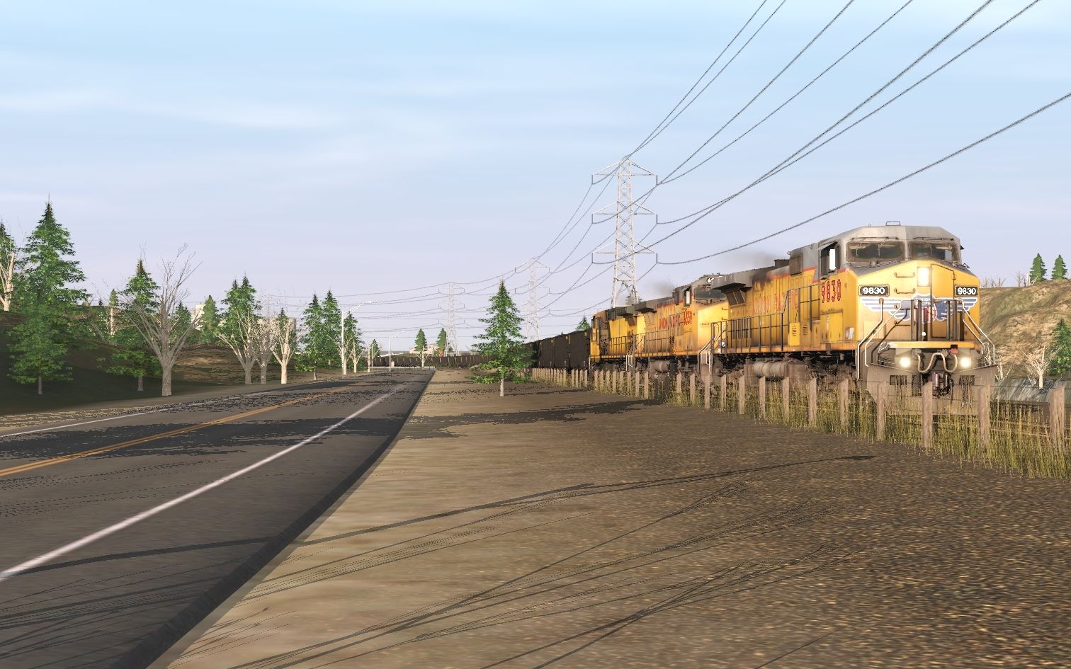 Tags: Trainz Railroad Simulator 2019, Bradfield Speedway, UP C44-9W EX-CNW Repaint 9770-9834 4, UP AC4400CW 6430-6549 TS19 4, UP C44-9W Patch EX-CNW 9770-9834 1, UP C44-9W Patch EX-CNW 9770-9834 3, WPSX 100 Ton Hopper