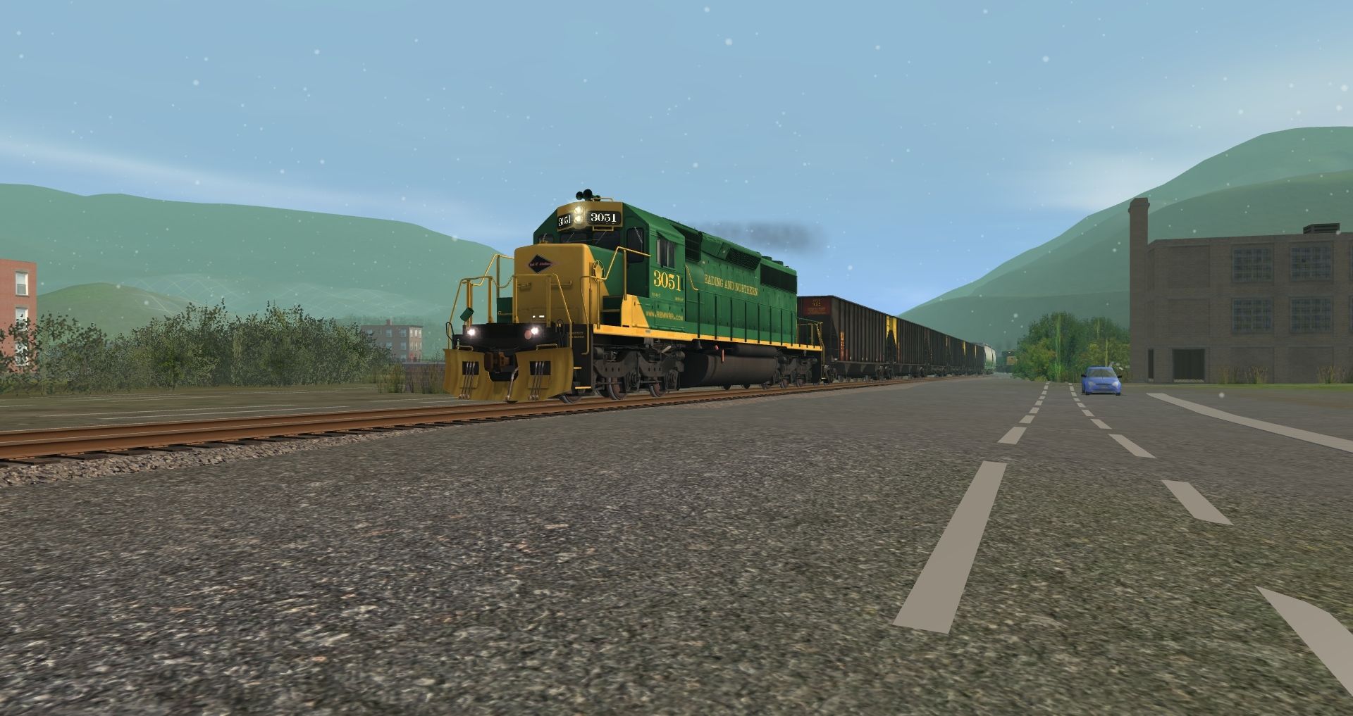 Tags: Trainz: A New Era, READING & NORTHERN, Default, RBMN SD40-2, RBMN SD50, PPLX 100 Ton Hopper, Cylindrical Hopper - Cotton Belt, RBMN ACF Centerflow 3 Bay, Bethgon RBMN