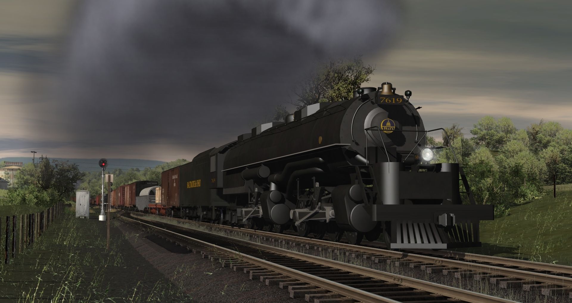 Tags: Trainz: A New Era, Coal Country, B&O 2-8-8-4 #7619, PRR Q2 duplex - red roof, Flying Cam, 40ft Boxcar C&O, NYC Lot 208-F Flatcar, 52ft NYC G42 Gondola, 40ft Boxcar NKP, 40ft Boxcar USRA SS NP 1, 40ft Boxcar WAB Early 1, 40ft N&W boxcar, 40ft PRR USRA boxcar SS