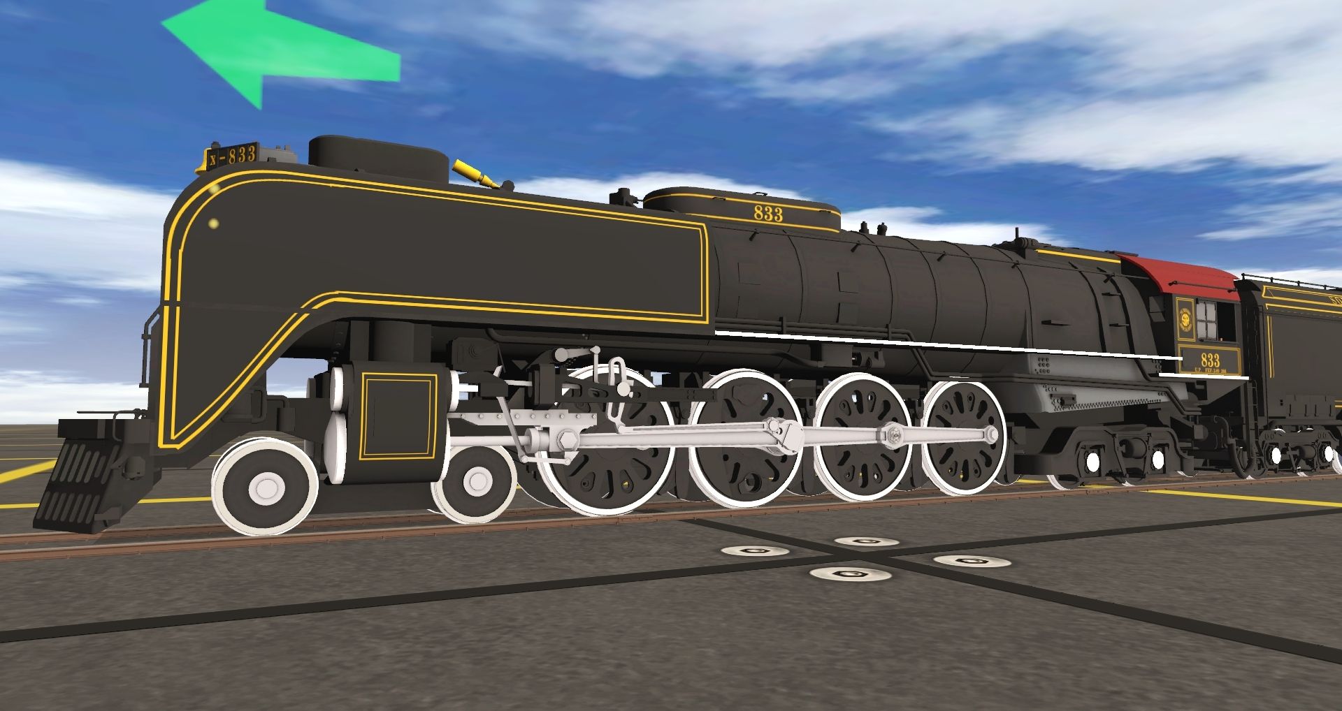 Tags: Trainz Railroad Simulator 2022, Nová trať, Výchozí, Southern (Ex-UPRR) FEF-2 #833, Southern (Ex-UPRR) FEF-2 #833 Tender, Southern (Ex-UPRR) Auxiliary Tender