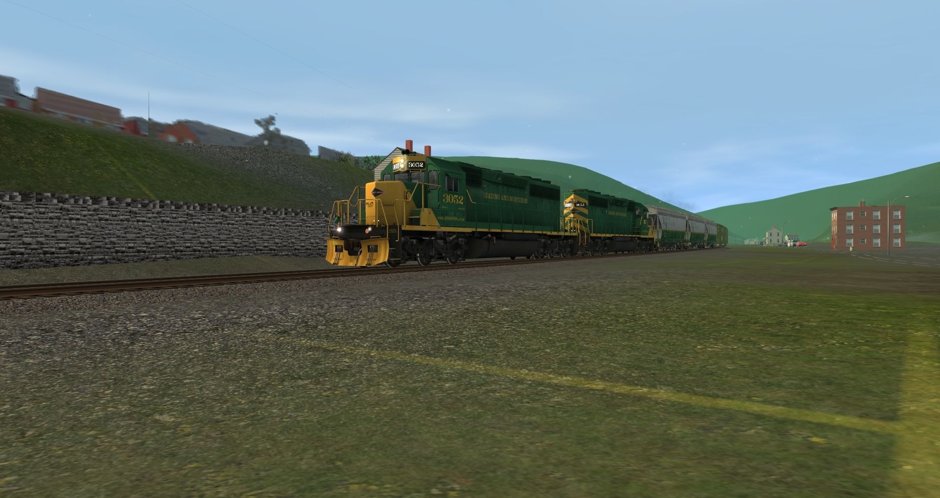 Tags: Trainz: A New Era, READING & NORTHERN, Default, RBMN SD40-2, RBMN ACF Centerflow 3 Bay, 50ft Boxcar BN #244378, 50ft Boxcar BN #244626, Bethgon RBMN, ATSF Ce-11 Caboose