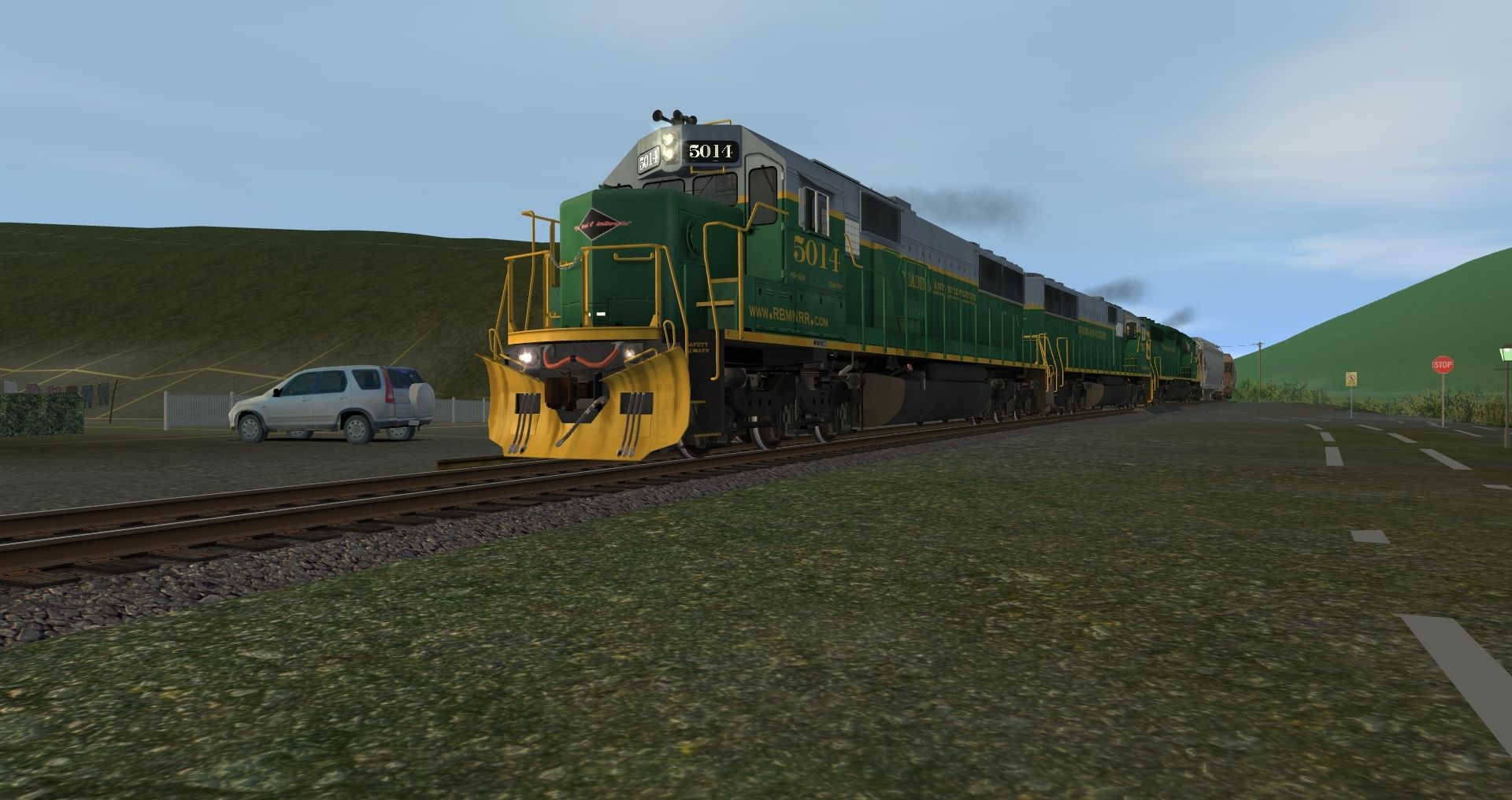 Tags: Trainz: A New Era, READING & NORTHERN, Default, RBMN SD50, RBMN SD40-2, C&O Kanawha K-4 Steam, JRPX ACF Centerflow 4 Bay round hatch, Log Wagon Short Knuckle, Custom ACF 3 Bay - Winchester & Western, PPLX 100 Ton Hopper, C&O Kanawha K-4 Tender, Bethgon RBMN