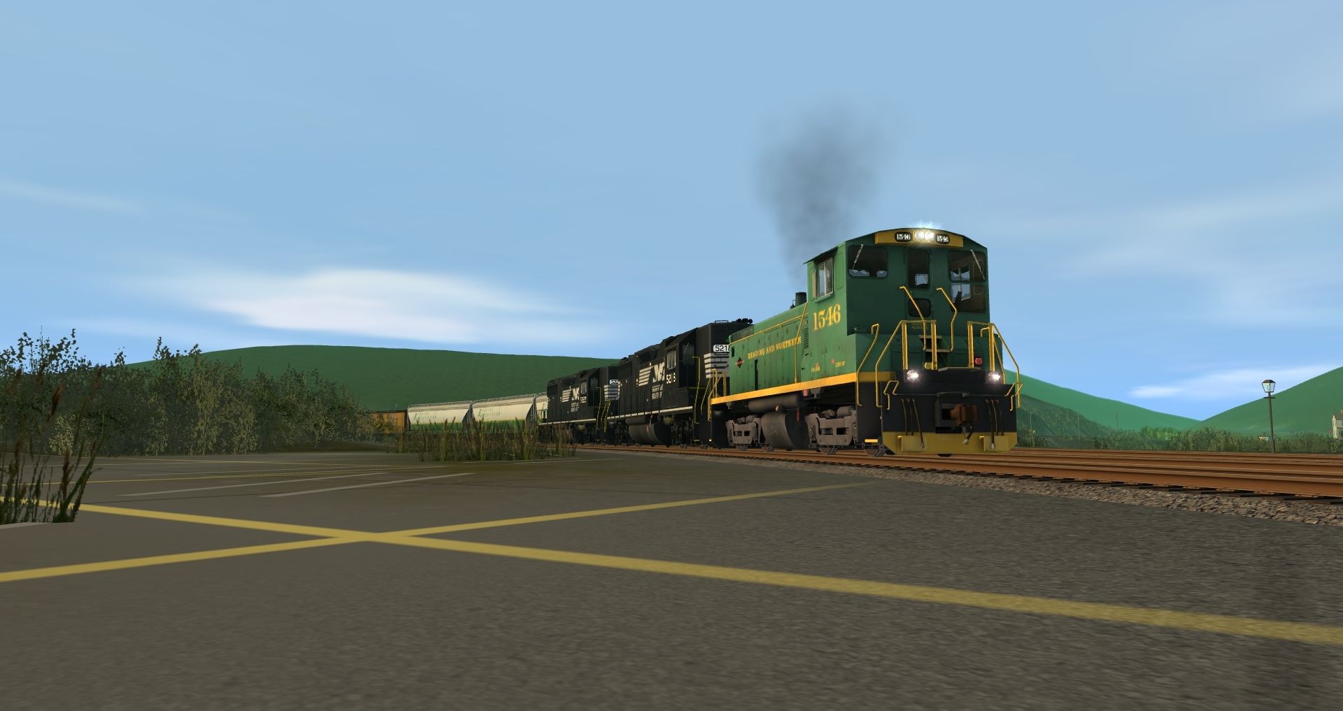 Tags: Trainz: A New Era, READING & NORTHERN, Default, RBMN SW1500 #1546, NS GP38-2, RBMN ACF Centerflow 3 Bay, PFE R-40-2 Reefer Early, Mill Gondola 52' Railgon