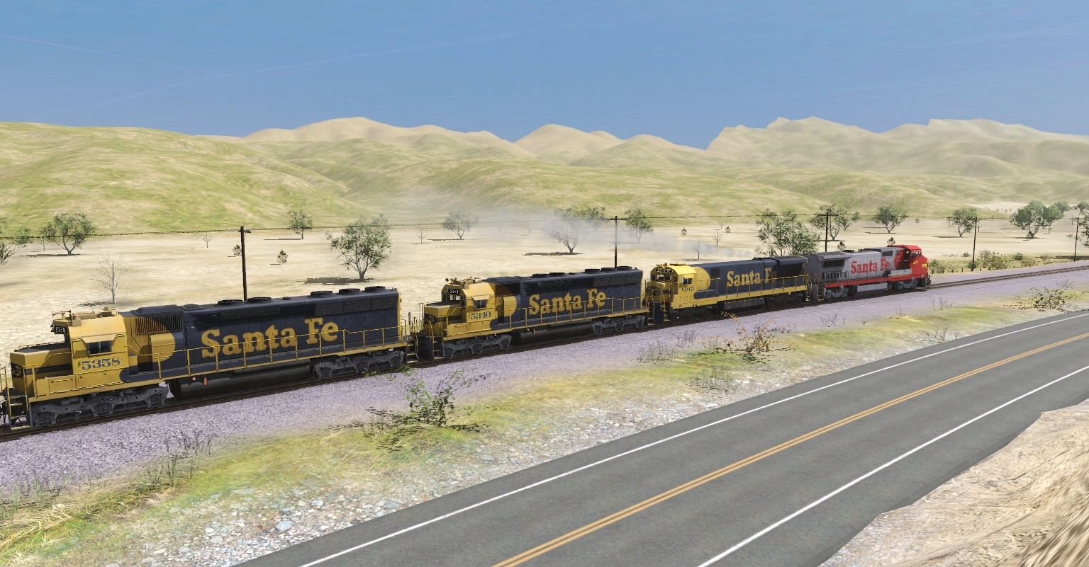 Tags: Trainz Railroad Simulator 2019, Mojave Sub Division, ATSF SD45, ATSF C30-7, ATSF B40-8W, Tri-level ETTX Autorack NS FULL, Tri-level ETTX Autorack NS, Trinity A405 50ft Hy-Cube Box Car DES, TTX Centerbeam Flat1, TSCX 20800 gal tank car, Tri-level ETTX Autorack CONRAIL, Tri-level ETTX Autorack BNSF, TankTrain C