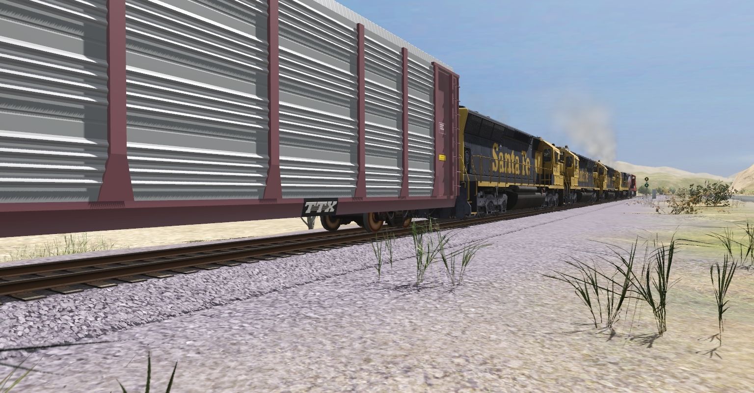 Tags: Trainz Railroad Simulator 2019, Mojave Sub Division, ATSF SD45, ATSF C30-7, ATSF B40-8W, Tri-level ETTX Autorack NS FULL, Tri-level ETTX Autorack NS, Trinity A405 50ft Hy-Cube Box Car DES, TTX Centerbeam Flat1, TSCX 20800 gal tank car, Tri-level ETTX Autorack CONRAIL, Tri-level ETTX Autorack BNSF, TankTrain C