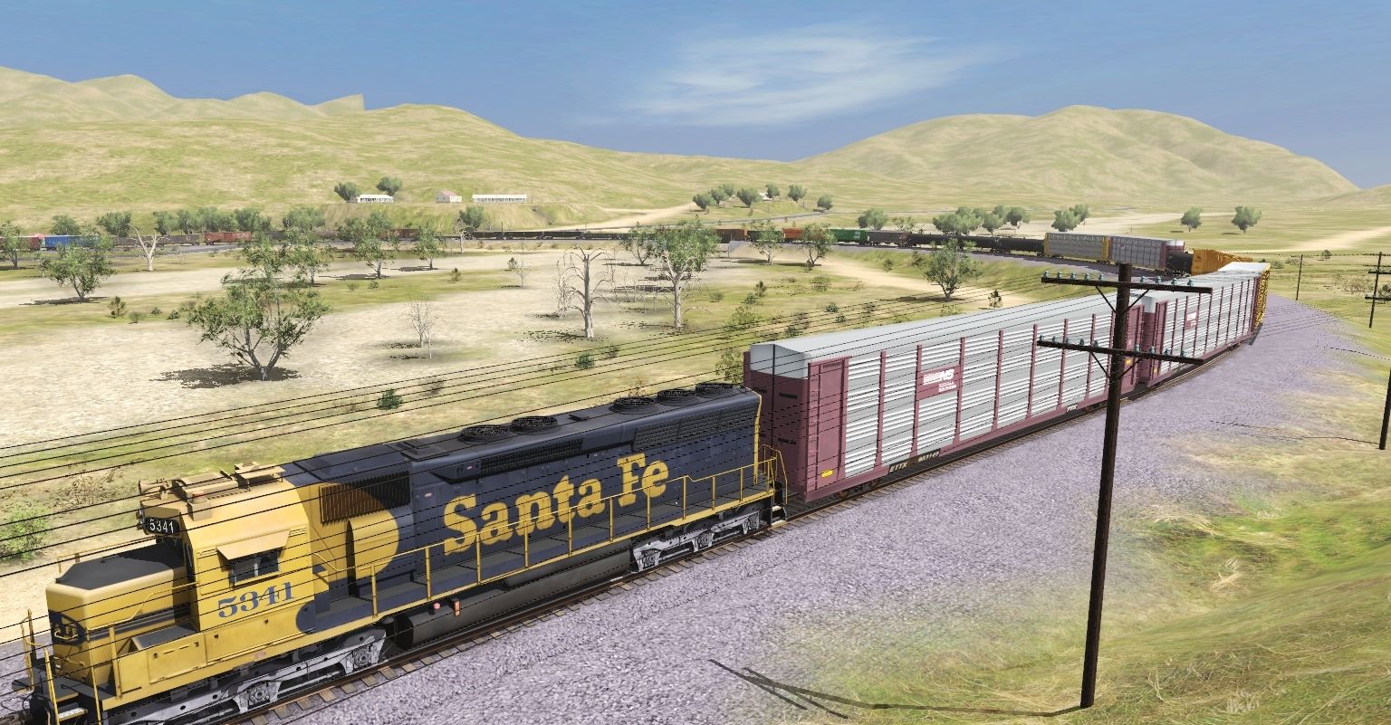 Tags: Trainz Railroad Simulator 2019, Mojave Sub Division, ATSF SD45, ATSF C30-7, ATSF B40-8W, Tri-level ETTX Autorack NS FULL, Tri-level ETTX Autorack NS, Trinity A405 50ft Hy-Cube Box Car DES, TTX Centerbeam Flat1, TSCX 20800 gal tank car, Tri-level ETTX Autorack CONRAIL, Tri-level ETTX Autorack BNSF, TankTrain C