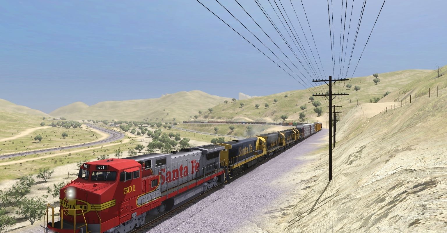 Tags: Trainz Railroad Simulator 2019, Mojave Sub Division, ATSF B40-8W, ATSF C30-7, ATSF SD45, Tri-level ETTX Autorack NS FULL, Tri-level ETTX Autorack NS, Trinity A405 50ft Hy-Cube Box Car DES, TTX Centerbeam Flat1, TSCX 20800 gal tank car, Tri-level ETTX Autorack CONRAIL, Tri-level ETTX Autorack BNSF, TankTrain C