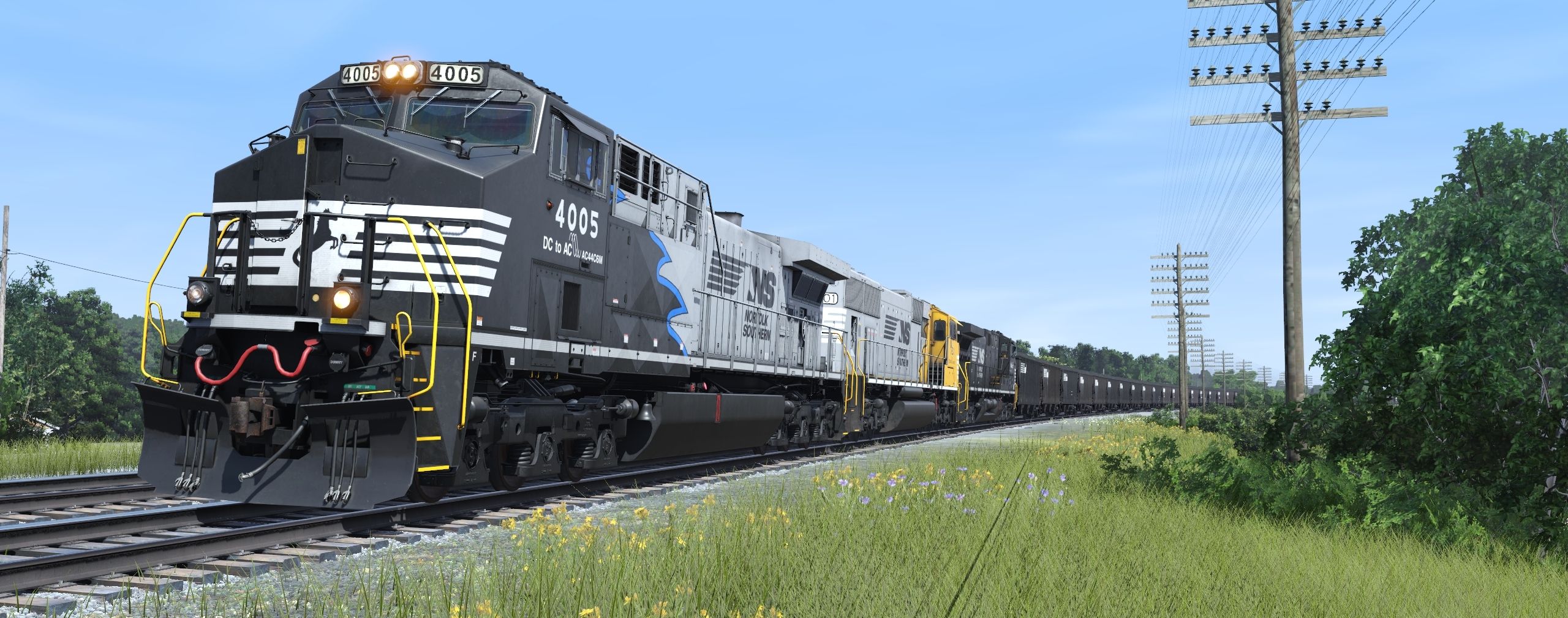 Tags: Trainz Railroad Simulator 2022, EL Mahoning Divison 9-20-22 Jon3, Default, NS AC44C6M Blue Mane, NS SD70ACC #1801, NS AC44C6M early, NS 100 Ton Hopper