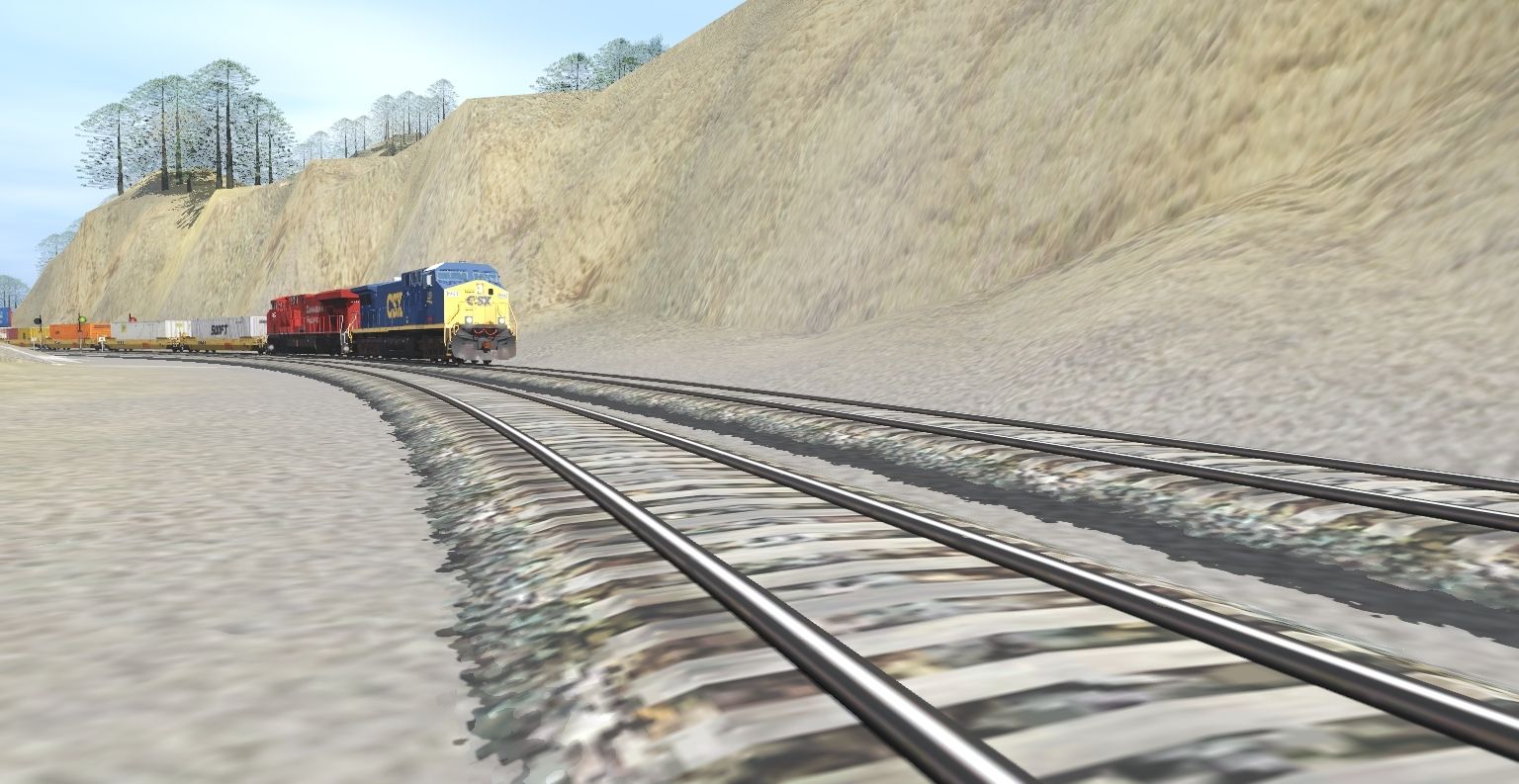 Tags: Trainz Railroad Simulator 2019, Highland Valley, Default, CSX AC4400CW YN3 229, GE ES44AC CP 8760-8961, AP53 TTX Wellcar, 89Ft Autorack NS, 89Ft Autorack UP, 89Ft Autorack UP 2