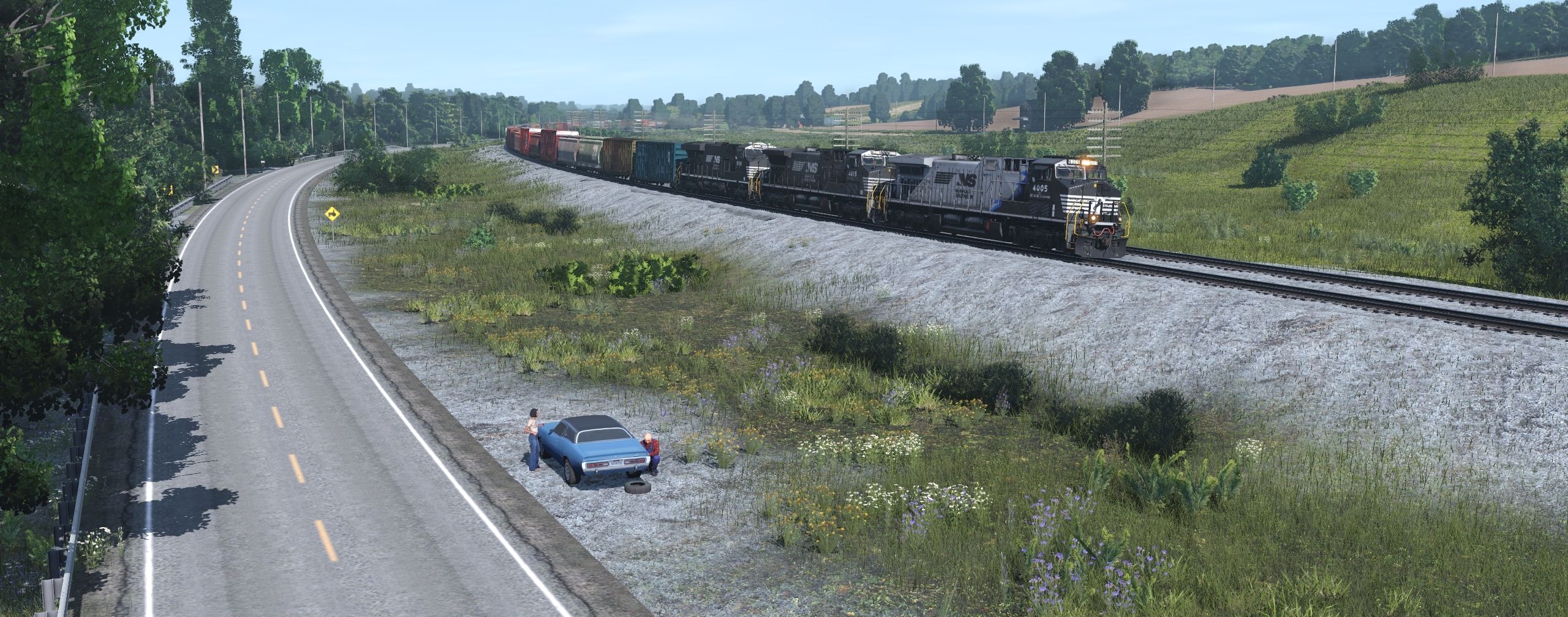 Tags: Trainz Railroad Simulator 2022, EL Mahoning Divison 9-20-22 Jon3, Default, NS AC44C6M Blue Mane, NS AC44C6M early, NS ES44AC ph2e, CAGY 50ft Boxcar FMC, CAGY 2 P-S 50_6ft Boxcar, BN Centerflow Hopper #458341, BPRX Centerflow Hopper #5507, BNSF 60ft Boxcar PS (Autoparts), BNSF Centerflow 3 Bay long hatch, ATSF Centerflow Hopper #313877, ATSF ACF Centerflow 3 Bay long hatch