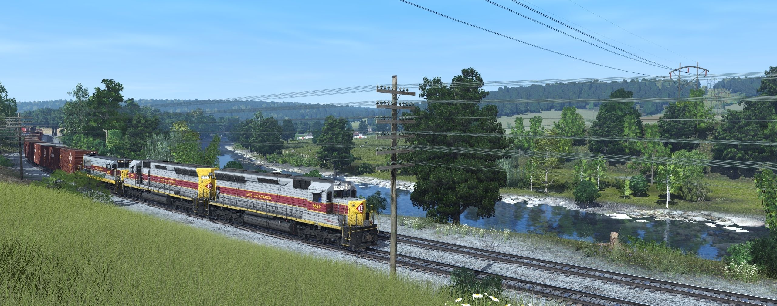 Tags: Trainz Railroad Simulator 2022, EL Mahoning Divison 9-20-22 Jon3, Default, EL SD45, EL U25B 2513-2527, EL 50' PS-1, CRDX 2 bay Trinity hopper wheathered 2, Coal River 50' ACF Boxcar, CNW 50' ACF Boxcar, D&H LO 4750 Hopper (1970s), EL LO red 2893, EL 60' ACF Boxcar, RDG 60' ACF Boxcar DD XAPc, SP PC&F 6033