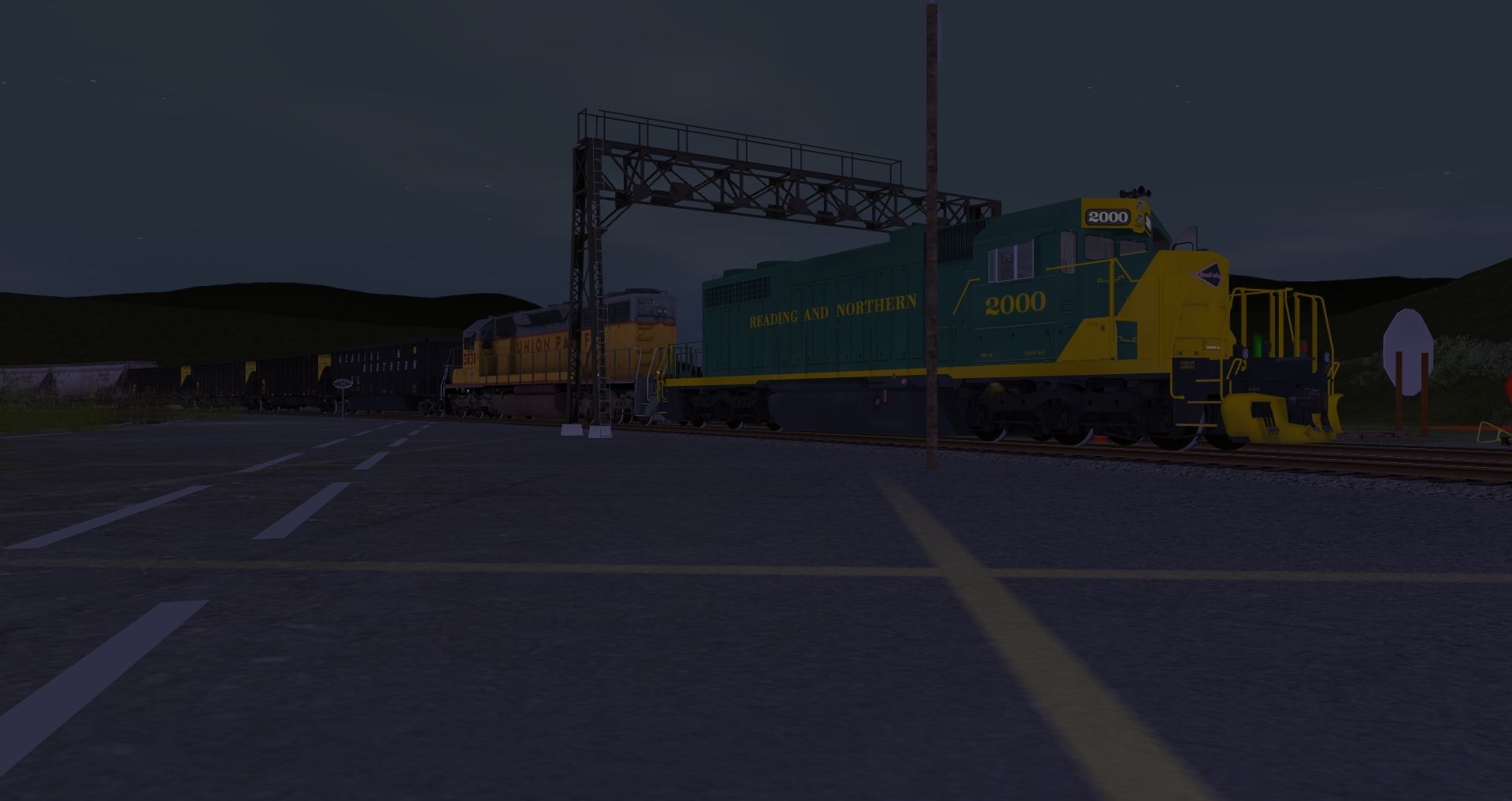 Tags: Trainz: A New Era, READING & NORTHERN, Default, SD38 RBMN #2000, UP SD40-2, C&O Kanawha K-4 Steam, Southern Streamlined Coach, Bethgon RBMN, PPLX 100 Ton Hopper, SLRG Budd Dome Prairie View, Custom ACF 3 Bay - Winchester & Western, Log Wagon Short Knuckle, JRPX ACF Centerflow 4 Bay round hatch, C&O Kanawha K-4 Tender