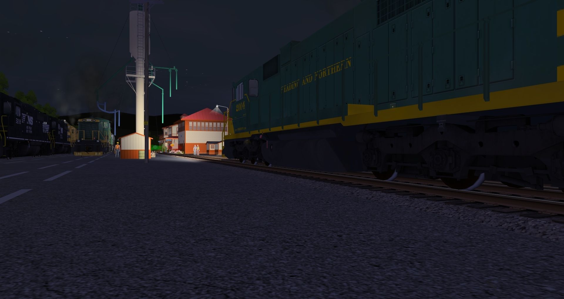 Tags: Trainz: A New Era, READING & NORTHERN, Default, SD38 RBMN #2004, RBMN SD50, RBMN SD40-2, RBMN SW1500 #1546, SD38 RBMN #2000, ATSF C30-7, SP SD45, NS GP38-2, JRPX ACF Centerflow 4 Bay round hatch, Custom ACF 3 Bay - Winchester & Western, MWGX (dirty) Cylindrical Hopper