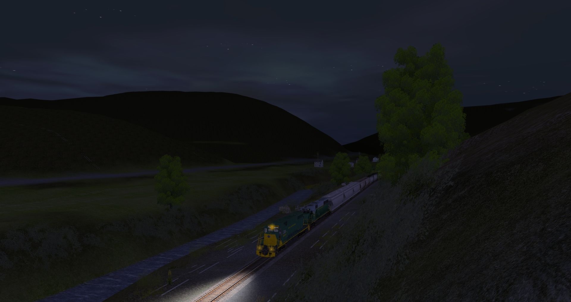 Tags: Trainz: A New Era, READING & NORTHERN, Default, SD38 RBMN #2004, RBMN SD50, C&O Kanawha K-4 Steam, JRPX ACF Centerflow 4 Bay round hatch, Custom ACF 3 Bay - Winchester & Western, MWGX (dirty) Cylindrical Hopper, NS 60ft Boxcar PS (Autoparts), C&O Kanawha K-4 Tender