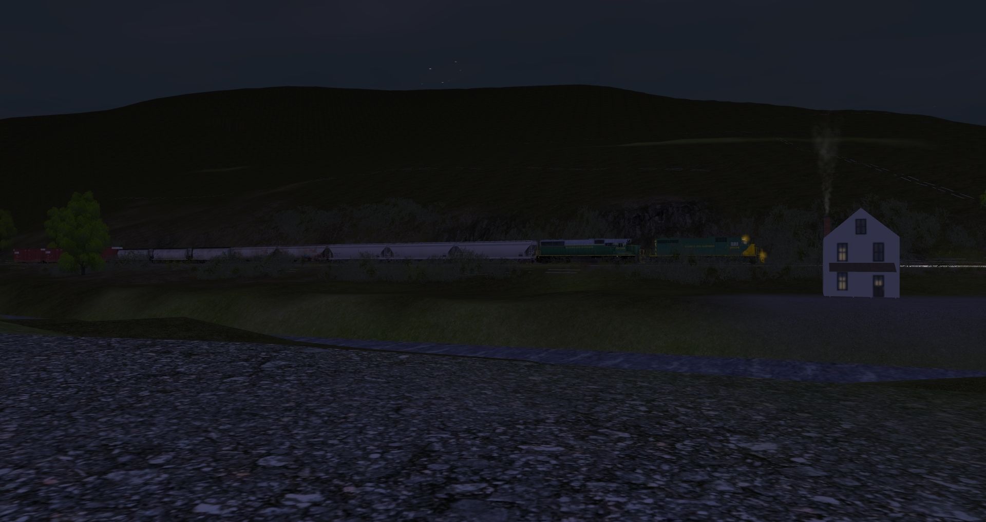 Tags: Trainz: A New Era, READING & NORTHERN, Default, SD38 RBMN #2004, RBMN SD50, JRPX ACF Centerflow 4 Bay round hatch, Custom ACF 3 Bay - Winchester & Western, MWGX (dirty) Cylindrical Hopper, NS 60ft Boxcar PS (Autoparts)