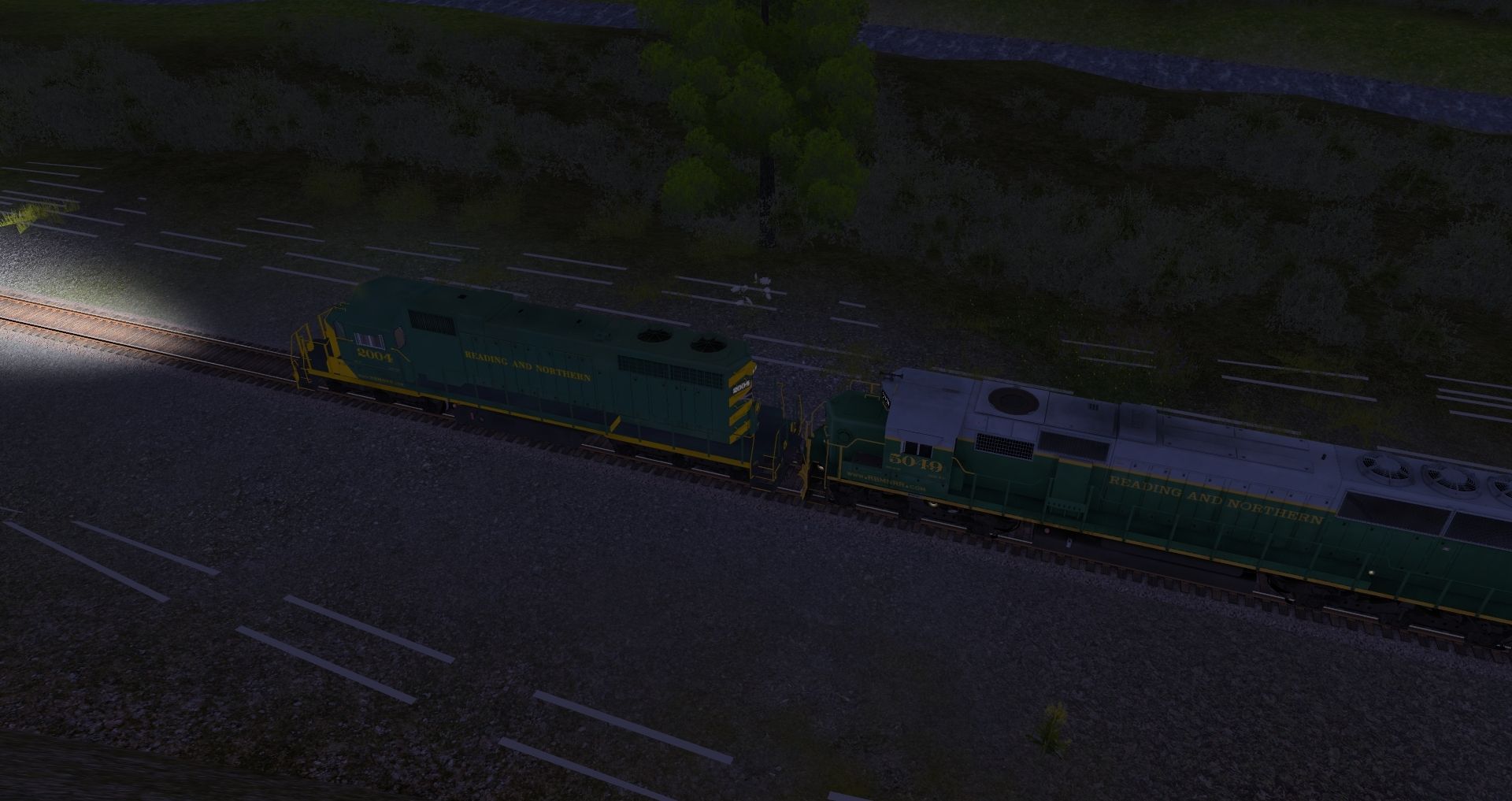 Tags: Trainz: A New Era, READING & NORTHERN, Default, RBMN SD50, SD38 RBMN #2004, JRPX ACF Centerflow 4 Bay round hatch, Custom ACF 3 Bay - Winchester & Western, MWGX (dirty) Cylindrical Hopper, NS 60ft Boxcar PS (Autoparts)
