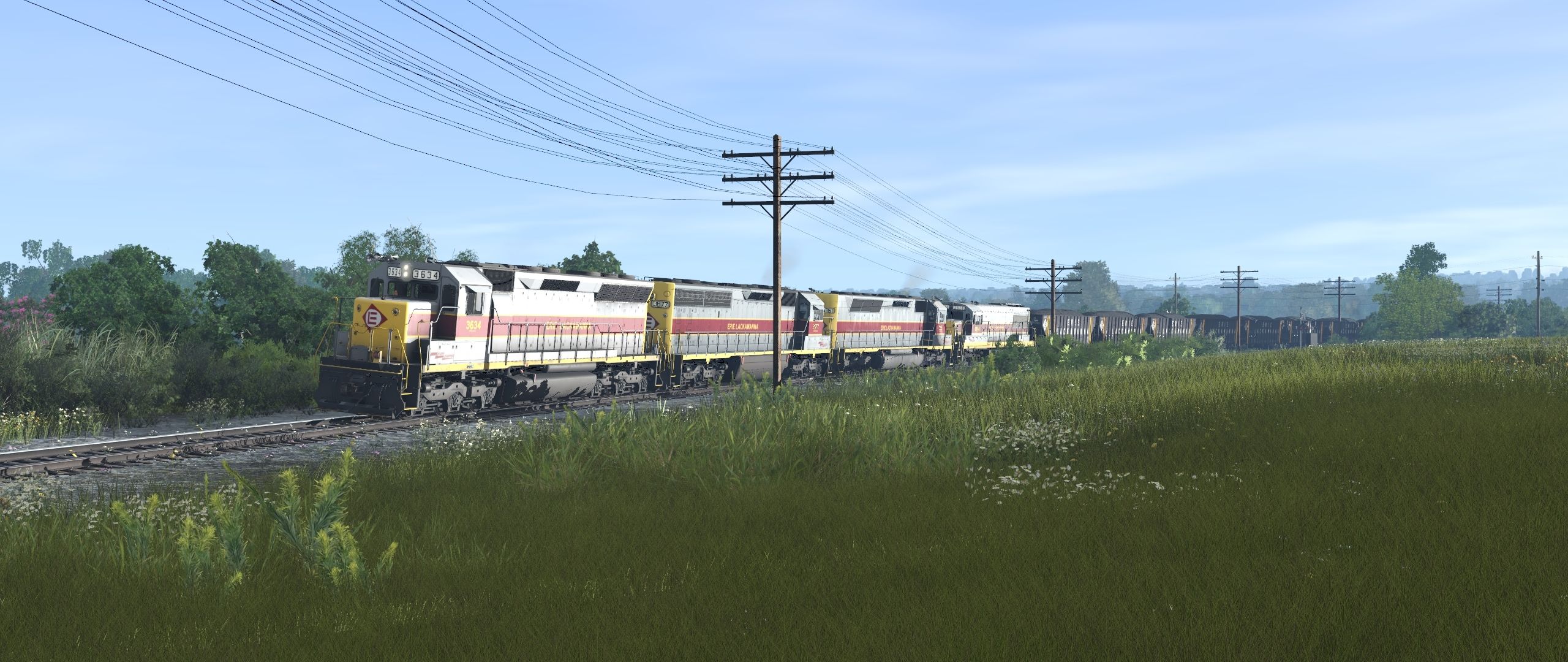Tags: Trainz Railroad Simulator 2022, EL Mahoning Divison 9-07-23 pre beta, Default, EL SD45, EL SD45-2, EL SD45M, EL U25B late 2513-2527, EL 75 Ton Open Hopper (1960s), EL Bay Window Caboose Maroon