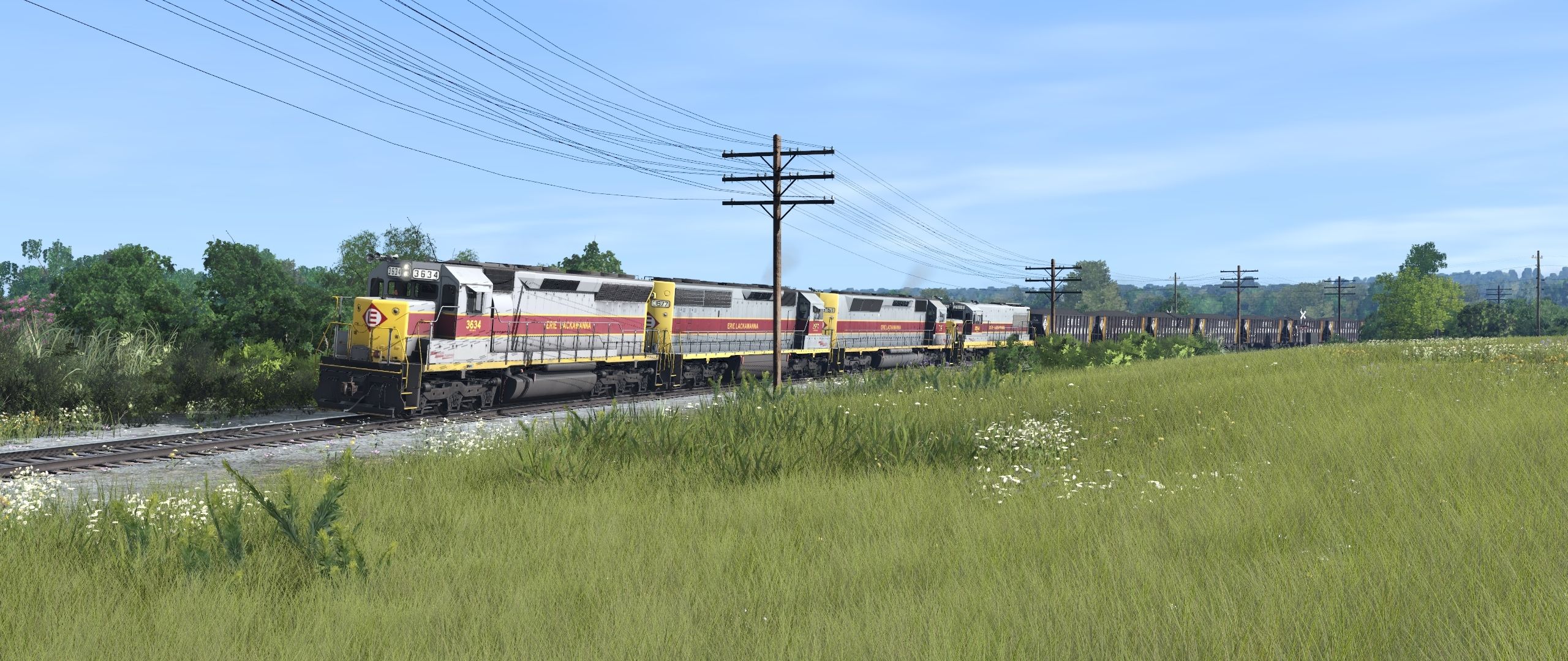 Tags: Trainz Railroad Simulator 2022, EL Mahoning Divison 9-07-23 pre beta, Default, EL SD45, EL SD45-2, EL SD45M, EL U25B late 2513-2527, EL 75 Ton Open Hopper (1960s), EL Bay Window Caboose Maroon