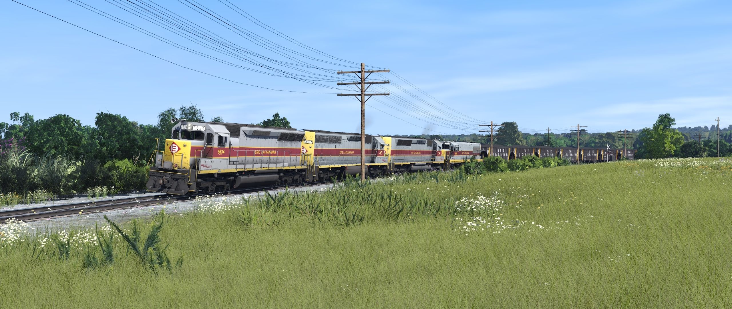 Tags: Trainz Railroad Simulator 2022, EL Mahoning Divison 9-07-23 pre beta, Default, EL SD45, EL SD45-2, EL SD45M, EL U25B late 2513-2527, EL 75 Ton Open Hopper (1960s), EL Bay Window Caboose Maroon