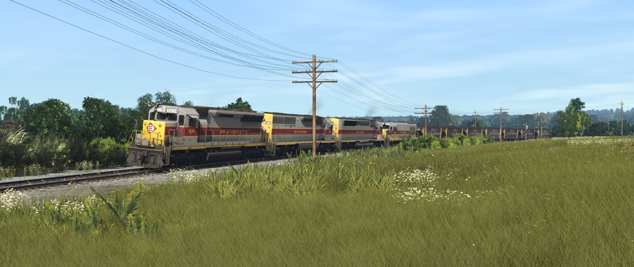Tags: Trainz Railroad Simulator 2022, EL Mahoning Divison 9-07-23 pre beta, Default, EL SD45, EL SD45-2, EL SD45M, EL U25B late 2513-2527, EL 75 Ton Open Hopper (1960s), EL Bay Window Caboose Maroon