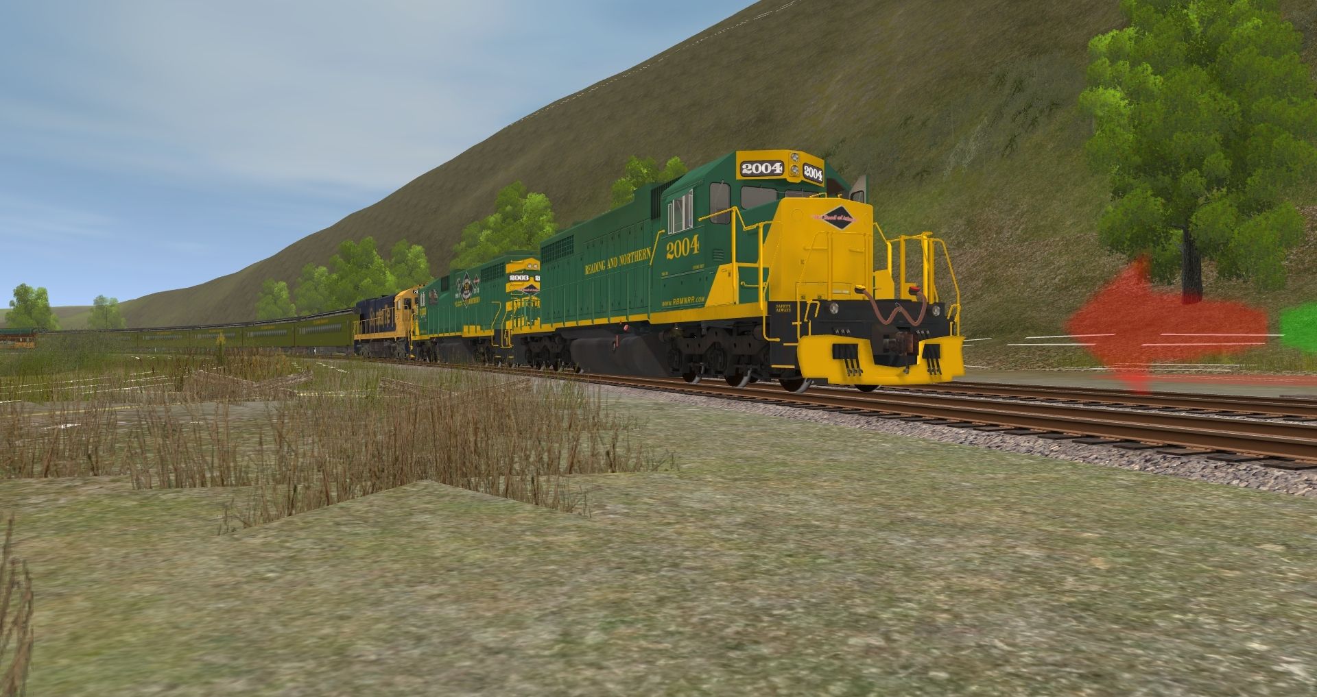 Tags: Trainz: A New Era, READING & NORTHERN, SD38 RBMN #2004, SD38 RBMN #2003, RBMN SD40-2, ATSF C30-7, RBMN SD50, Coach C&O George Washington 742, Coach C&O George Washington 735, SLRG Budd Dome Scenic View, Southern Streamlined Coach