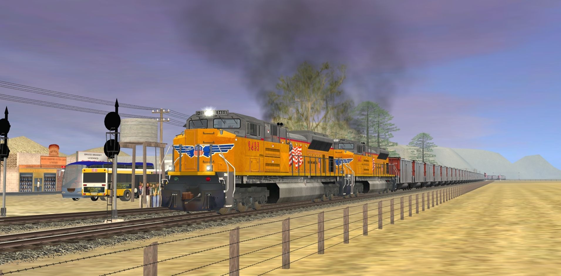 Tags: Trainz: A New Era, Intro to Steam (Modern Day) V2, Intro to Steam (Modern Day) V2 - Default, EMD SD70ACe Weathered Union Pacific DES, Custom C80 - Havenwood Southern