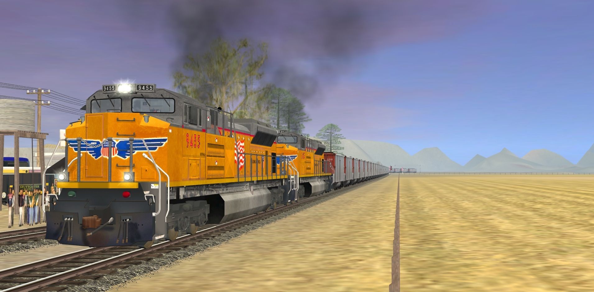 Tags: Trainz: A New Era, Intro to Steam (Modern Day) V2, Intro to Steam (Modern Day) V2 - Default, EMD SD70ACe Weathered Union Pacific DES, Custom C80 - Havenwood Southern