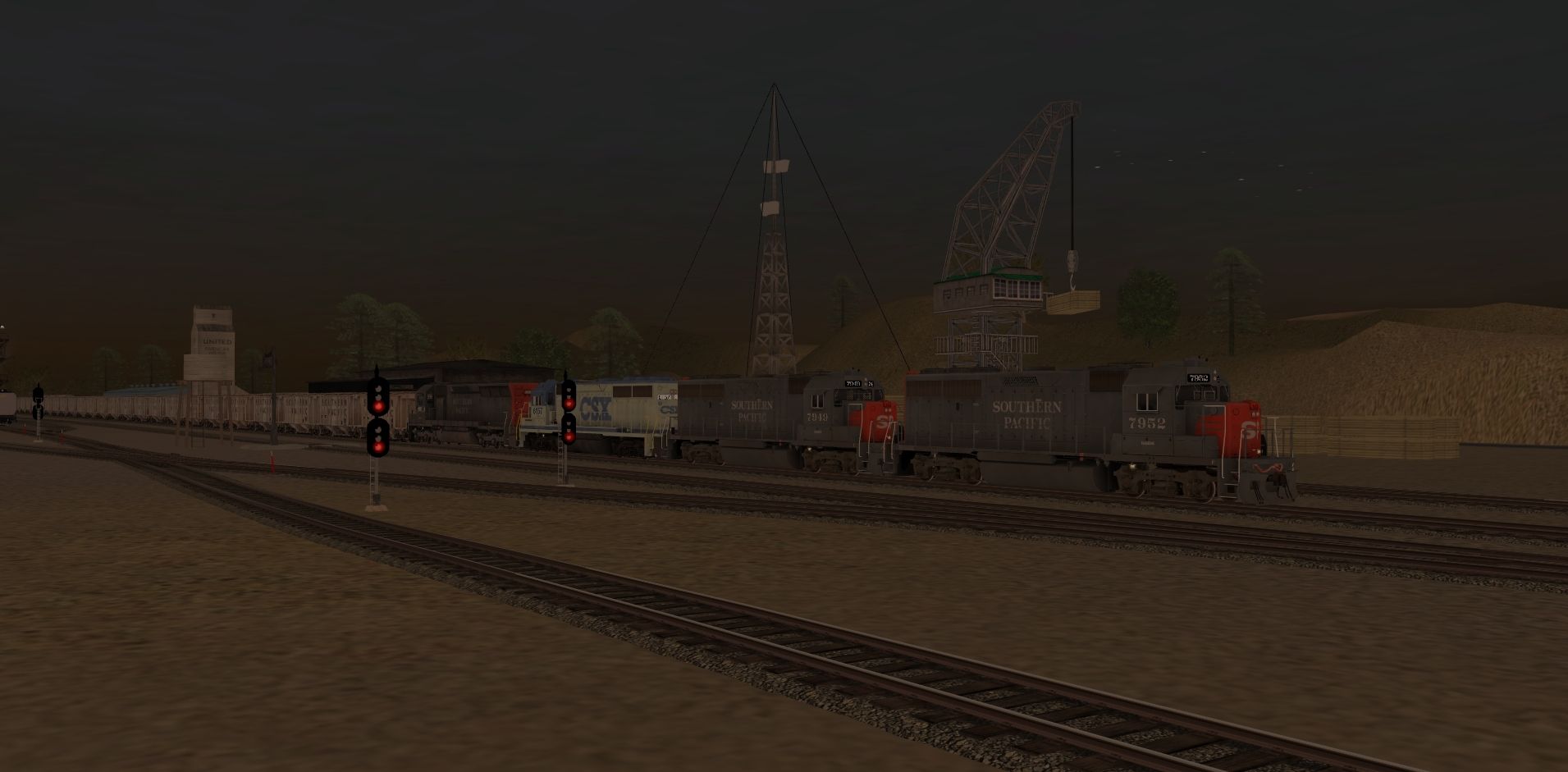 Tags: Trainz: A New Era, Intro to Steam (Modern Day) V2, Intro to Steam (Modern Day) V2 - Default, SP GP40-2, CSX GP40-2, SP SD45, ATSF C30-7, UPRR FEF-3 844TTG, Reading B8a 0-6-0 Camelback, UPY SW1500, GBCX Cylindrical Hopper, Flatcar BNSF 60ft #917504 TS12, SP PS 2bay LO hopper, IC Airslide Hopper