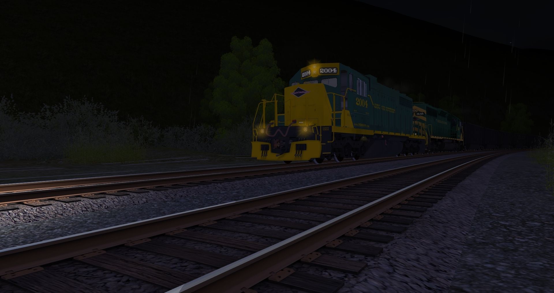 Tags: Trainz: A New Era, READING & NORTHERN, Default, SD38 RBMN #2004, RBMN SD40-2, Bethgon RBMN, Oil Tanker UTLX 60 Ft, JRPX ACF Centerflow 4 Bay round hatch, Obs C&O George Washington, Pullman Paul A Bert