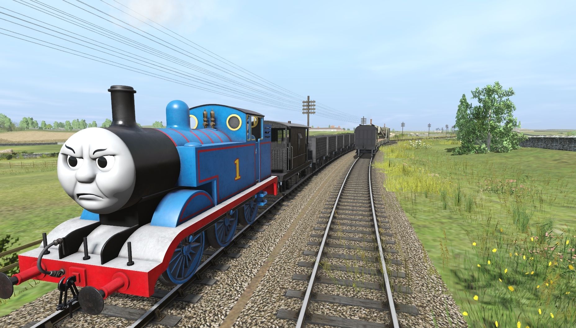 Tags: Trainz Railroad Simulator 2019, 6 Gangstas Release, Default, Flying Cam, TTTE - Thomas The Tank Engine [TRS19], TTTE - James the red engine, (#1TFM) Sodor Brake Van 2020, Sodor Works Unit Coach, Sodor Breakdown Crane, Sodor Breakdown Flat Truck Sleepers, TTTE - 7 plank, TTTE - James's Tender