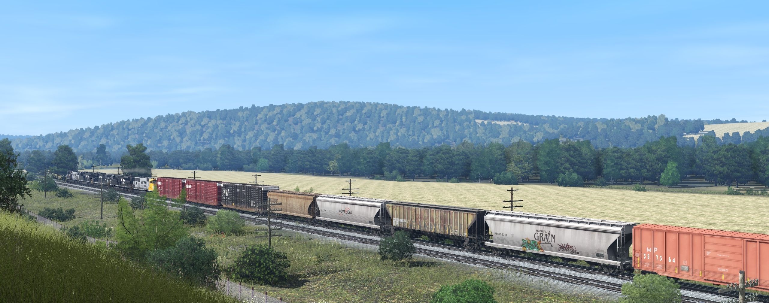 Tags: Trainz Railroad Simulator 2022, EL Mahoning Divison 9-07-23 pre beta ev, Default, NS SD70ACC #1800, NS SD70ACU, NS ET44AC, NS ES44AC ph2e, NS AC44C6M Red Mane, MIRR #3 Trinity 3 Bay Hopper, MIRR #2 Trinity 3 Bay Hopper, MIRR 1 P-S 50_6ft Boxcar, MP P-S 50_6ft Boxcar, MKT 2 Bay Hopper ACF 2971, MWGX ACF Centerflow 4 Bay Dirty