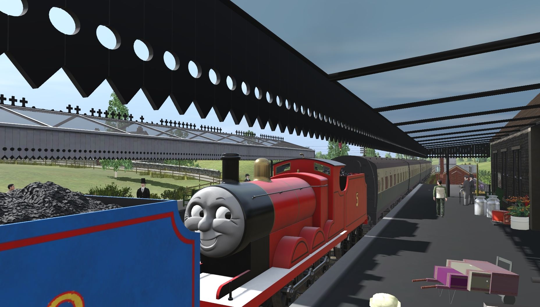 Tags: Trainz Railroad Simulator 2019, 6 Gangstas Release, Default, TTTE - Edward The Blue Engine [TRS19], TTTE - James the red engine, Flying Cam, TTTE - Edward's Tender [TRS19], TTTE - James's Tender, RWS 3D - RWS Express Coach Composite S1 Green, RWS 3D - RWS Express Coach Brake S1 Green