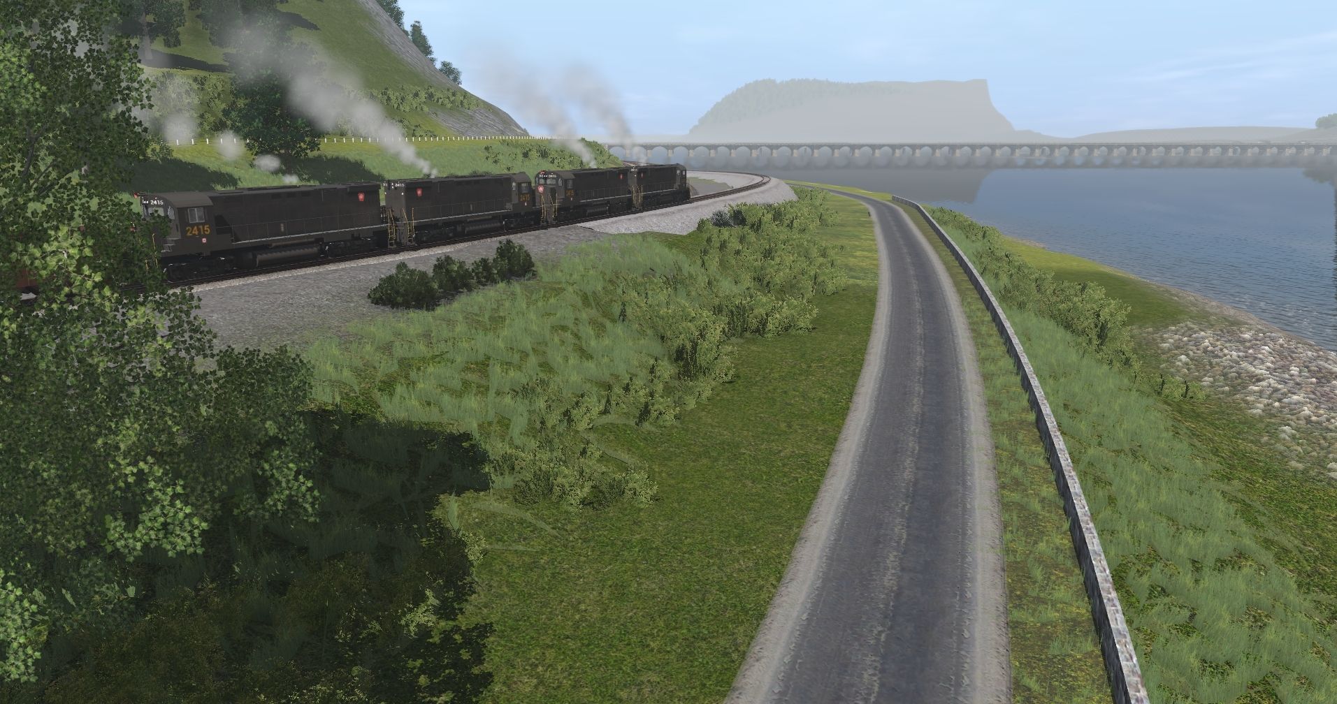 Tags: Trainz Railroad Simulator 2019, Pennsy Lines- Pitts to Philly and More WIP 22e, PRR 2/9/23, Alco C424 PRR #2415, PRR GLa Hopper, 52ft PRR G31d Gondola, 52ft PRR G31a Gondola, Coal 2 Bay Hopper Pennsylvania 2 #MFX, 41FT Gondola NYC Black, 41FT Gondola LE&E, 53ft Flatcar LE&E, 41FT Gondola C&HR, PRR Caboose N5B 1949 # 477604, 41FT Gondola B&LE