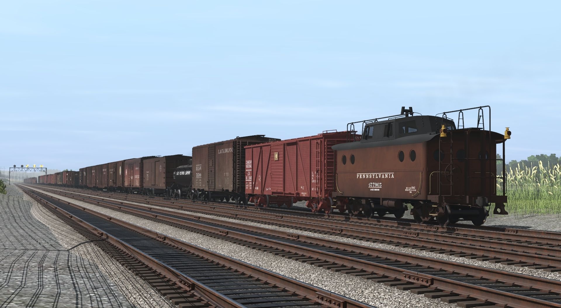 Tags: Trainz Railroad Simulator 2022, Pennsy Lines- Pitts to Philly and More WIP 22d, Default, Flying Cam, PRR F7A Ph 1b, PRR F7B Ph 1b, PRR N5c Caboose 2, CN 503500 series boxcar, 40ft Boxcar DL&W As Delivered Weathered, 36ft Tank Car Gulf, 40ft Boxcar CCC&STL Wood, 40ft Boxcar PRR X31c, 50' Boxcar AE&C, 50' Boxcar LV Early (end doors)