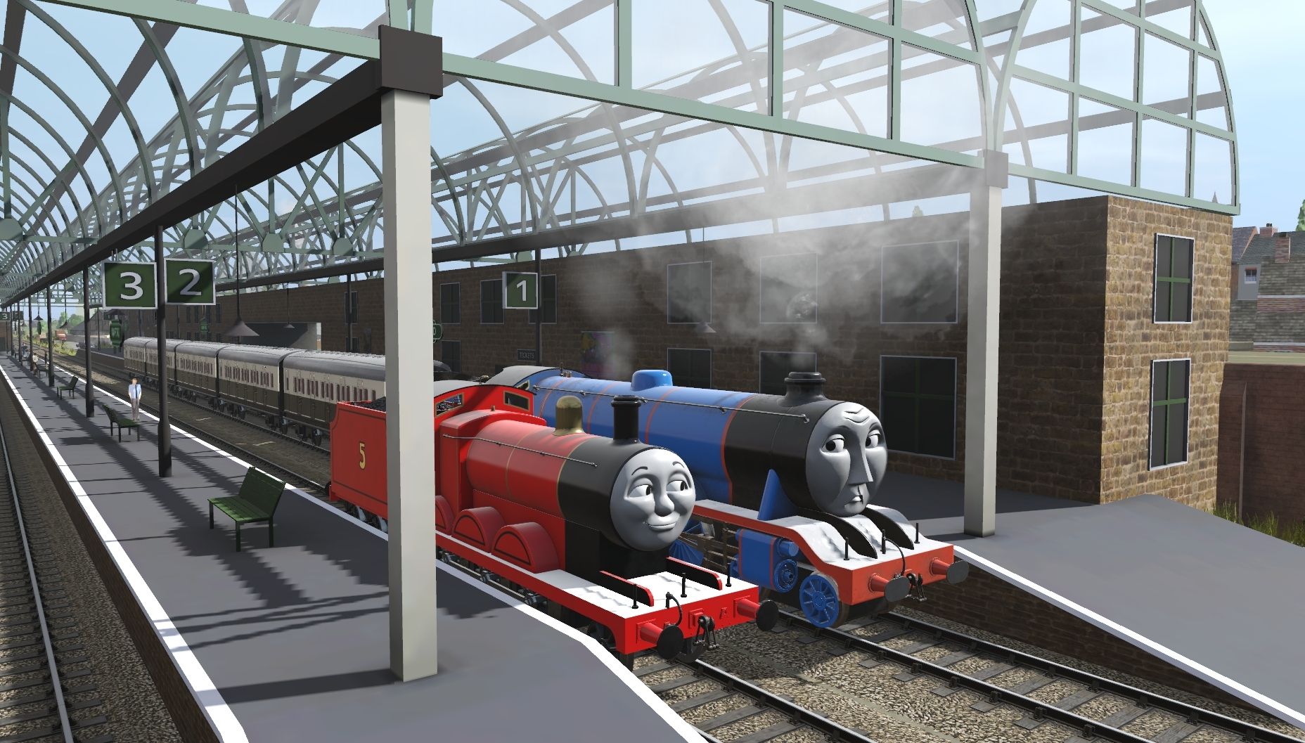 Tags: Trainz Railroad Simulator 2019, 6 Gangstas Release, Default, TTTE - James the red engine, TTTE - Gordon, TTTE - James's Tender, TTTE - Gordon's Tender, TTTE - S1 Express Composite Coach, TTTE - S1 Express Brake Coach