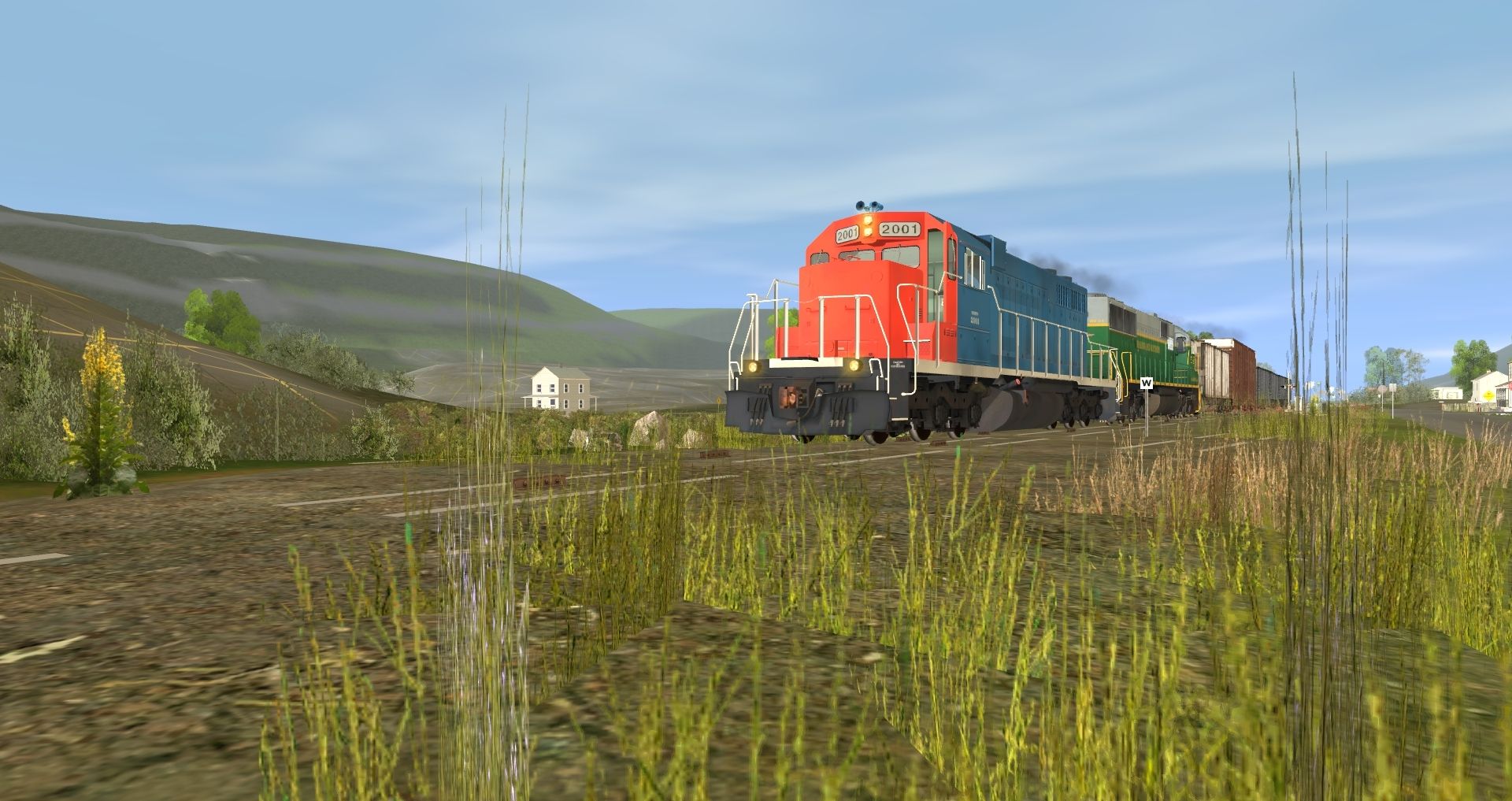 Tags: Trainz: A New Era, READING & NORTHERN, Default, SD38 RBMN #2001, RBMN SD50, NYC ex-RDG LO 3510, NW 60ft Boxcar PS [Brown] (Autoparts), Bethgon RBMN