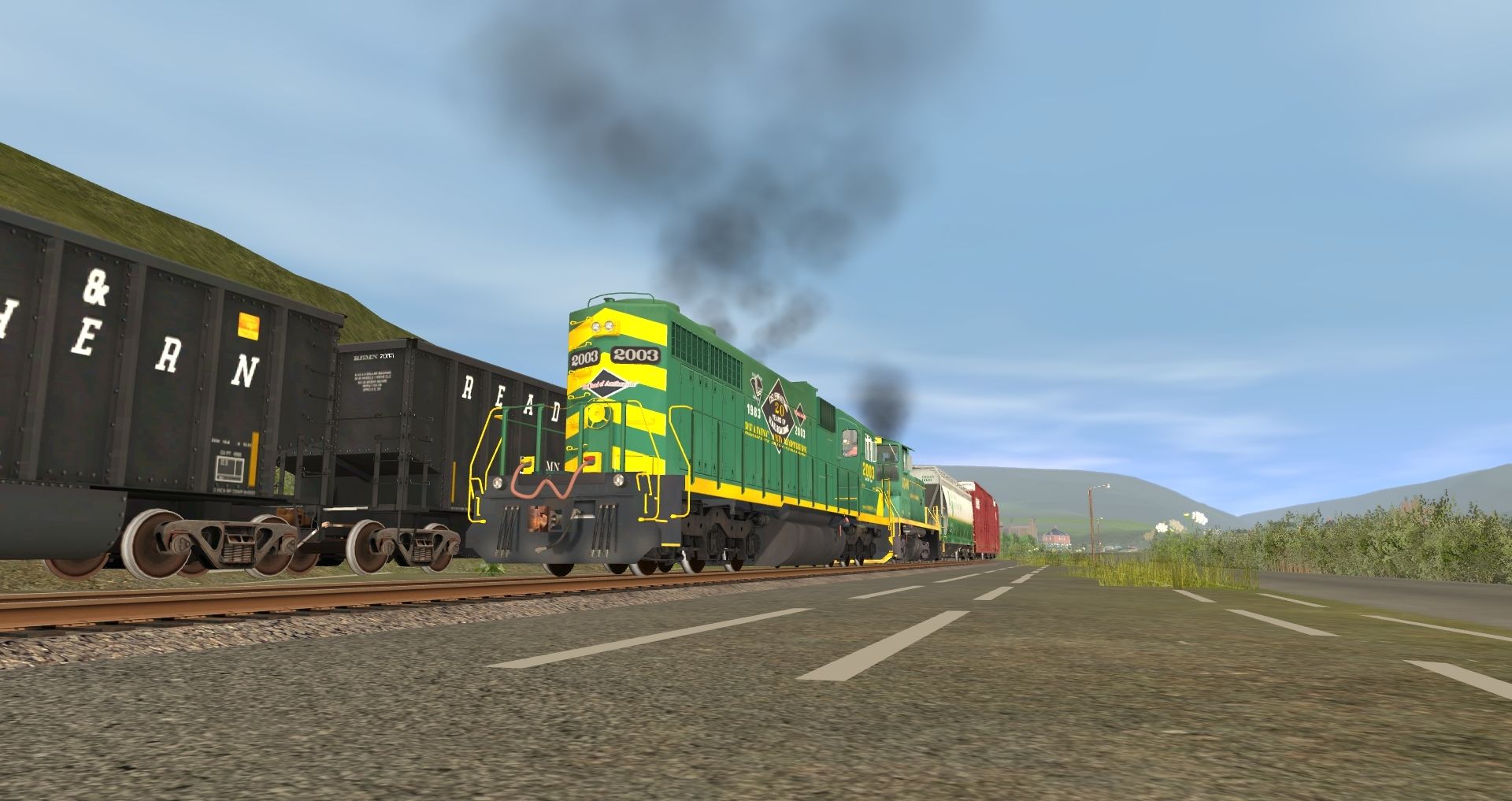 Tags: Trainz: A New Era, READING & NORTHERN, Default, SD38 RBMN #2003, RBMN SW1500 #1546, RBMN SD50, RBMN SD40-2, NS 60ft Boxcar PS (Autoparts), Bethgon RBMN, Mill Gondola 52' Railgon, RBMN ACF Centerflow 3 Bay, PPLX 100 Ton Hopper