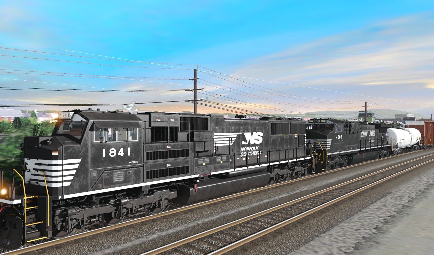 Tags: Trainz Railroad Simulator 2019, NSReadingLineDLS, NS SD70ACC, NS AC44C6M early, NS C40-9W, NS ES44AC, GATX 23000 gal Funnel-Flow tank car white, 60ft HC Boxcar NS Ver1, CRYO-TRANS Reefer Fort Knox, CRYO-TRANS Reefer Cascades, 73ft Centerbeam AOK #27220, UTLX 23000 gal Funnel-Flow tank car Terra, BNSF Centerflow 3 Bay long hatch Swoosh