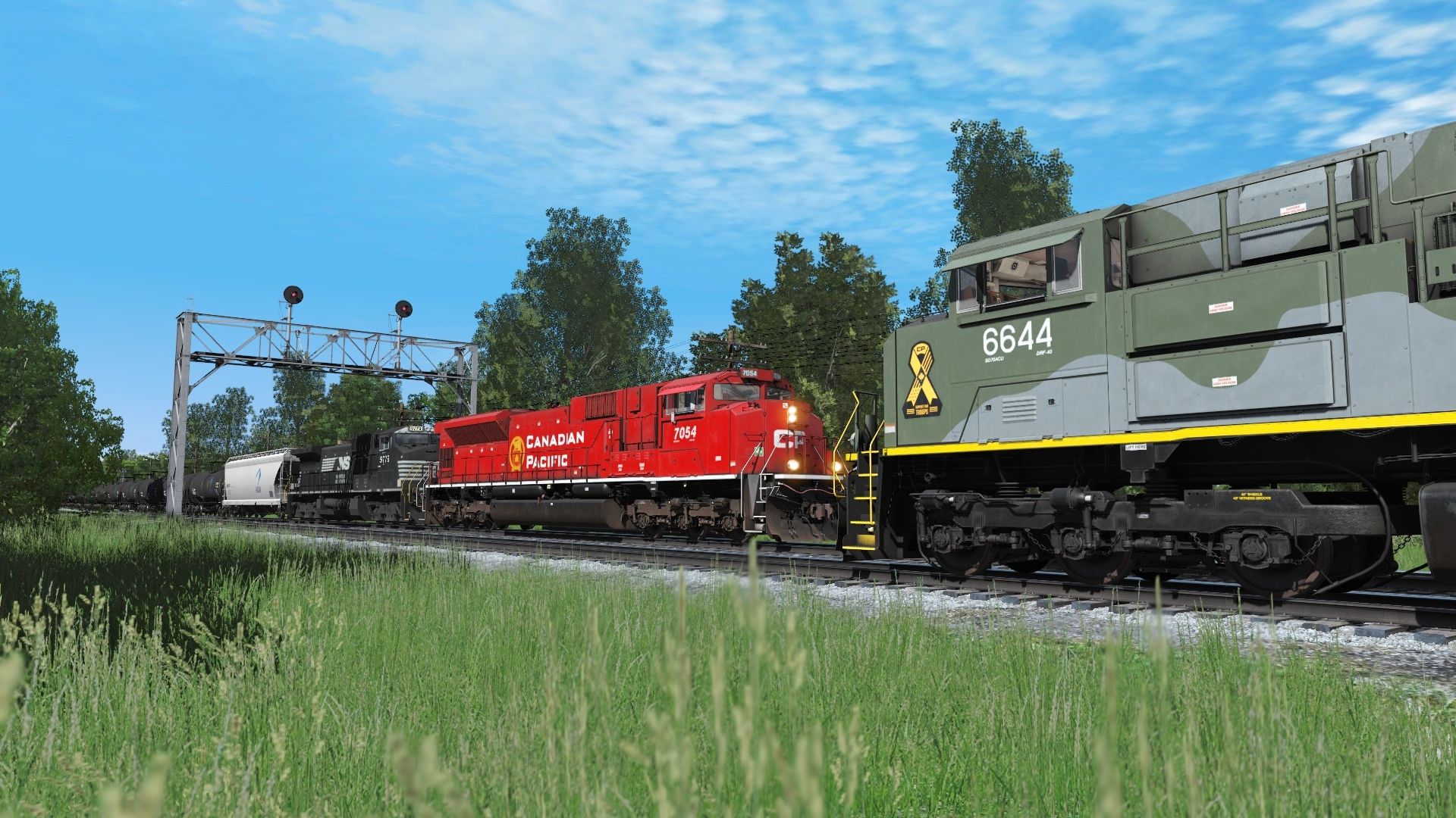 Tags: Trainz Railroad Simulator 2019, Tidewater Point Rail v3, Default, CP SD70ACU #6644, CP SD70ACU, NS Horsehead C40-9W, ADMX 20800 gal tank car, BPRR 4 Bay Hopper 2 Loaded, ADMX ACF Centerflow 4 Bay round hatch, BPRR 4 Bay Hopper 2
