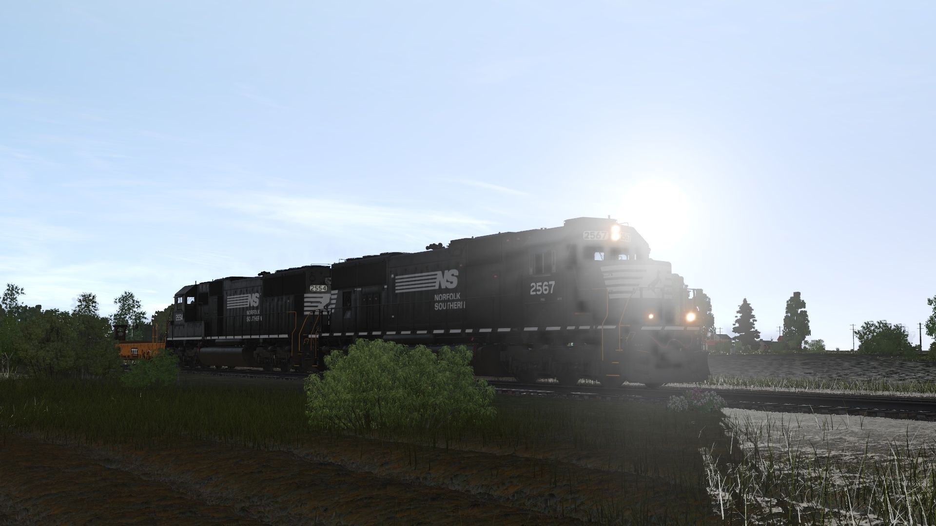Tags: Trainz Railroad Simulator 2022, TRS19 - NS Sandusky District - Stage 3, Default, NS SD70 (ex-cr), NS SD70 Order 3, Flatcar 89 ft TTX for Trailers DES