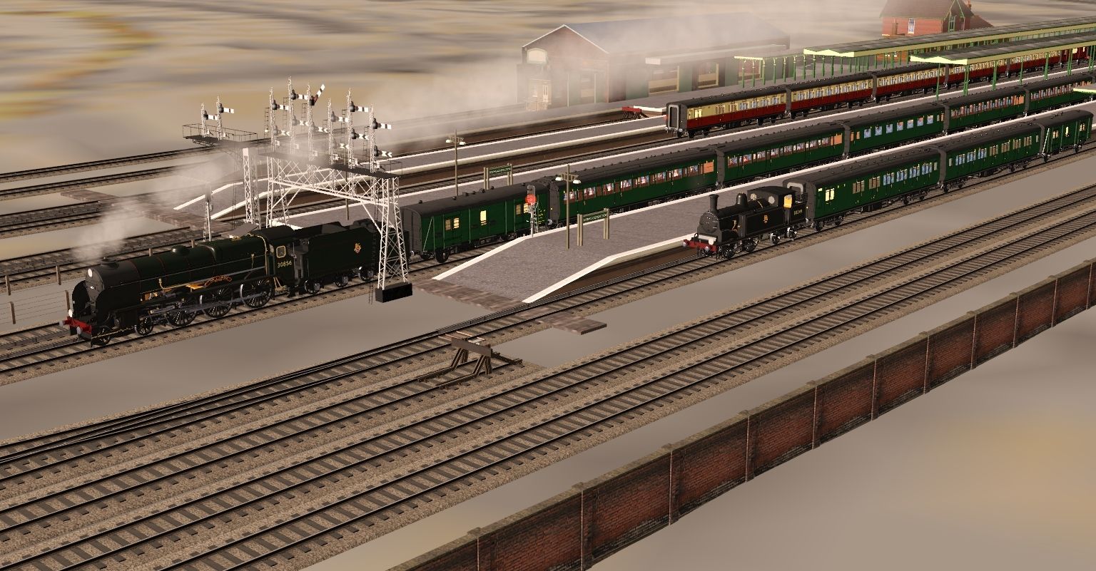 Tags: Trainz Railroad Simulator 2019, South London Test MK 2.09J, BR Maunsell Lord Nelson - Green, BR Drummond M7, LBSCR K Class BR Black, LBSCR C2x BR Black Double Dome, BR Maunsell 5000 Gal Tender - Green, BR Maunsell 59 ft R4 BCK Brake Composite (High Window) - Green, BR Maunsell 59 ft R4 TK Third (Low Window) - Green, BR Maunsell 59 ft R4 CK Composite (High Window) - Green, BR Maunsell 59 ft R4 TO Third Open - Green, BR Maunsell Van C - Passenger Brake Van - Green, BR Maunsell 59 ft R4 BCK Brake Composite (High Window) - Crimson and Cream