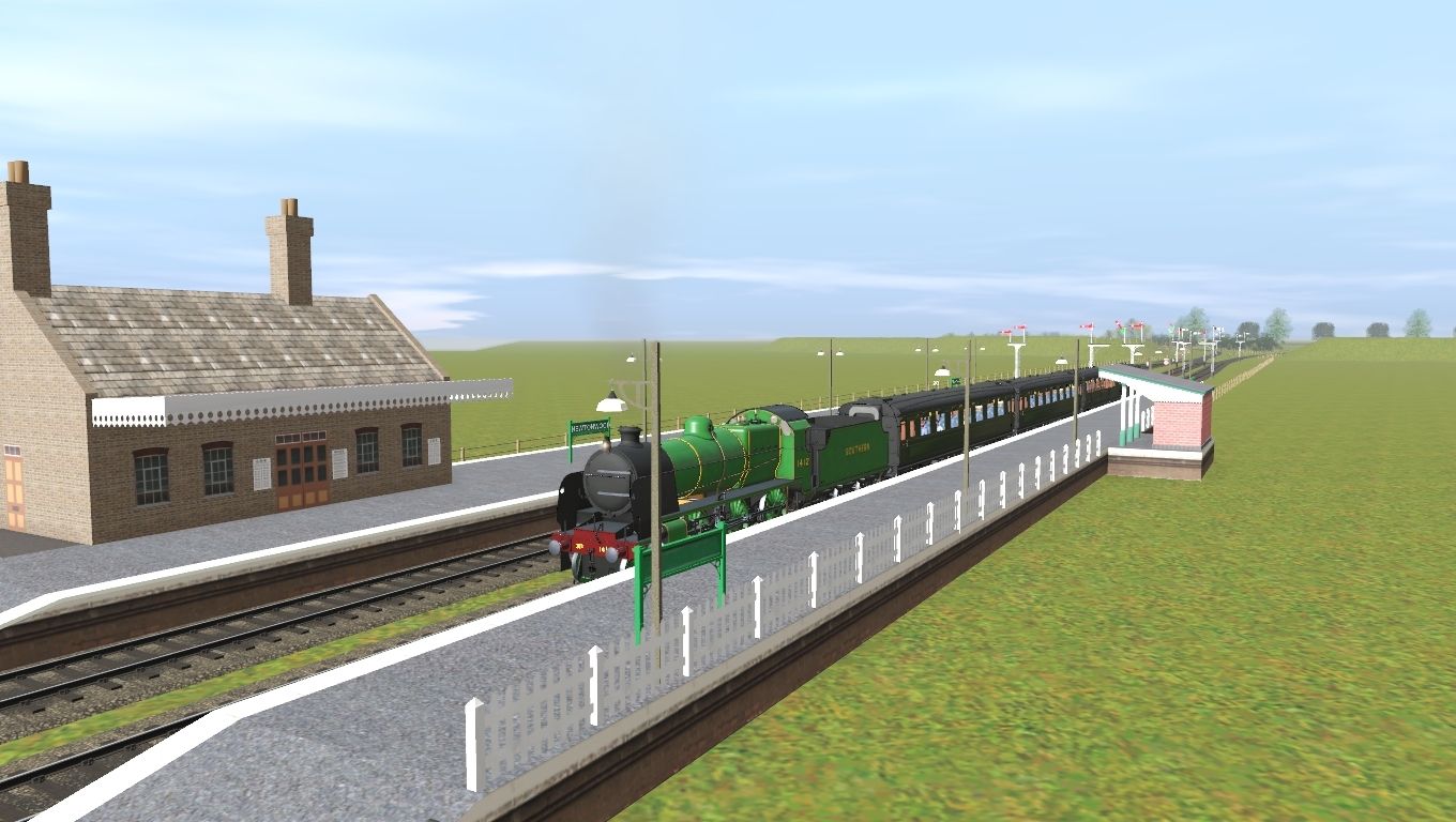 Tags: Trainz Railroad Simulator 2019, LBSCR2, Default, SR Maunsell N Class - Malachite green, SR Maunsell 3500 Gal Tender - Malachite Green, SR Maunsell 59 ft R4 TO Third Open - Olive, SR Maunsell 59 ft R4 BCK Brake Composite (High Window) - Olive, SR Maunsell Van U - Utlity Van - Olive Green