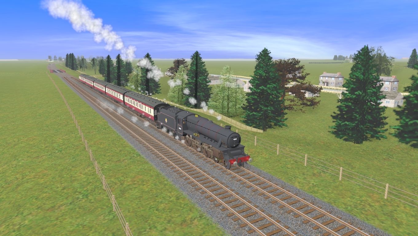 Tags: Trainz Railroad Simulator 2019, Sherwood Forrester Coal Byways & Secondary Lines3a, Default, LMS BR Black5 45020, LMS BR Black 5 Tender E, LMS BR49 CK (D1791) Composite Corridor carriage - crimson & cream, LMS BR49 TO (D1692) Third Open carriage - Crimson & Cream, LMS BR49 BTO (D1693) Third Open Brake Carriage - crimson & cream